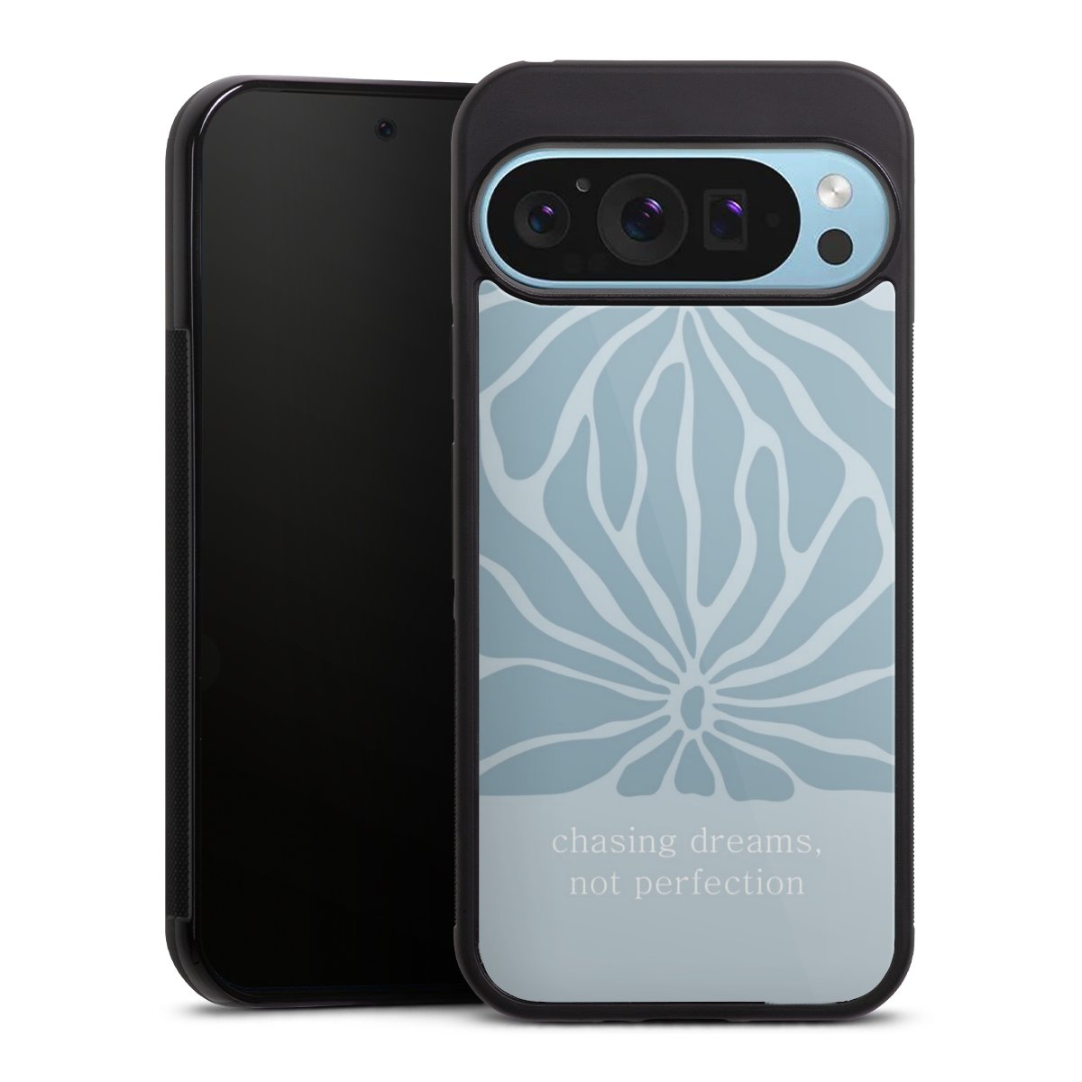 Wir drucken Dein Motiv auf die Rückseite des Glasinlays und verbinden es anschließend fest mit der Silikonhülle, sodass nichts übersteht und alles wie aus einem Guss wirkt. Außerdem ist das stabile Glaselement durch eine zusätzliche Beschichtung vor Kratzern geschützt und sorgt für eine leichte Reflexion auf dem brillanten Druckbild.