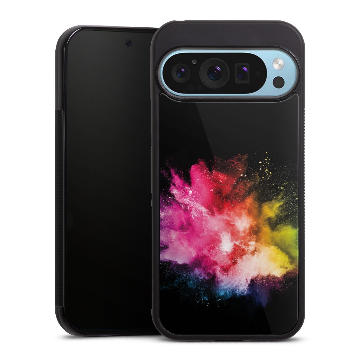 Wir drucken Dein Motiv auf die Rückseite des Glasinlays und verbinden es anschließend fest mit der Silikonhülle, sodass nichts übersteht und alles wie aus einem Guss wirkt. Außerdem ist das stabile Glaselement durch eine zusätzliche Beschichtung vor Kratzern geschützt und sorgt für eine leichte Reflexion auf dem brillanten Druckbild.