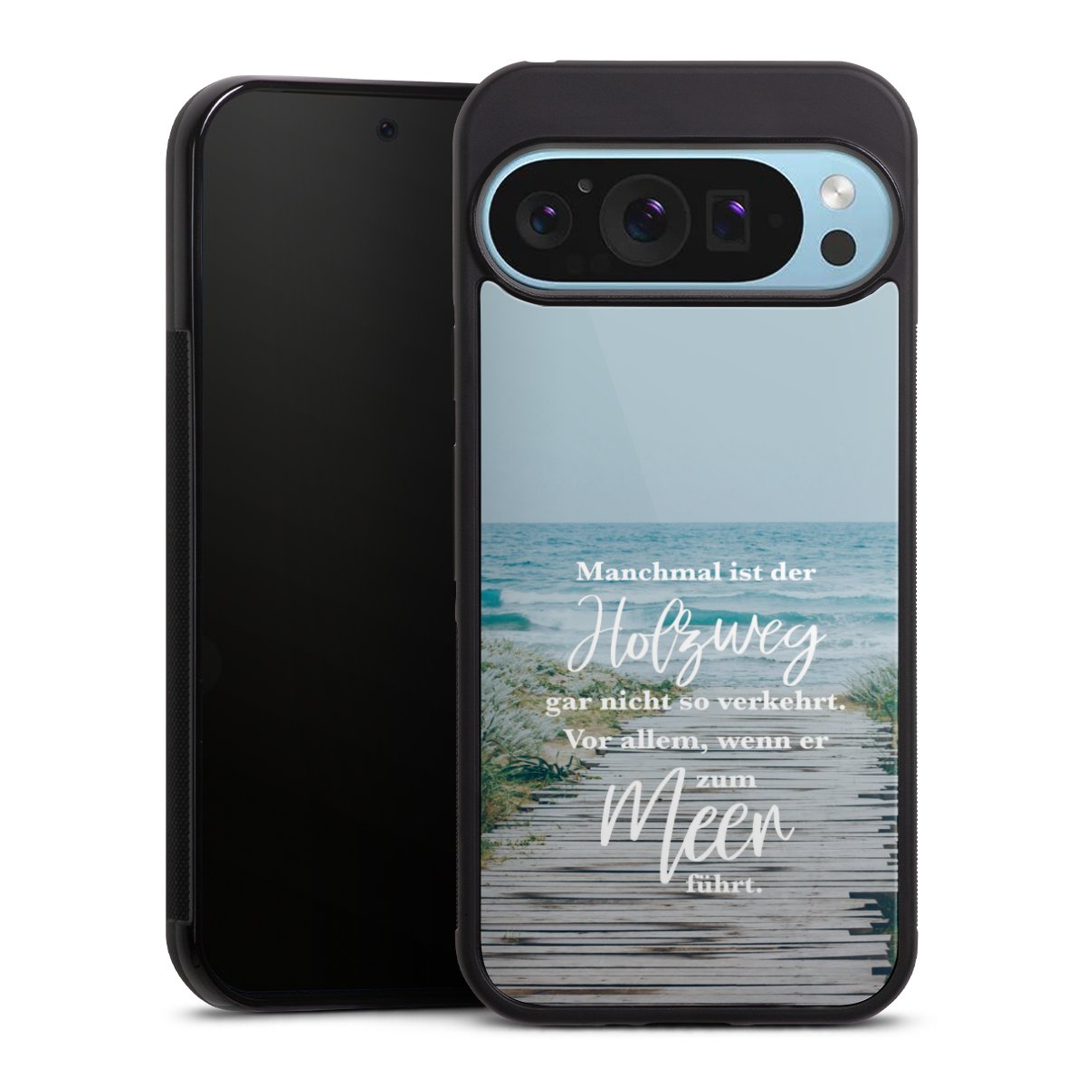 Wir drucken Dein Motiv auf die Rückseite des Glasinlays und verbinden es anschließend fest mit der Silikonhülle, sodass nichts übersteht und alles wie aus einem Guss wirkt. Außerdem ist das stabile Glaselement durch eine zusätzliche Beschichtung vor Kratzern geschützt und sorgt für eine leichte Reflexion auf dem brillanten Druckbild.