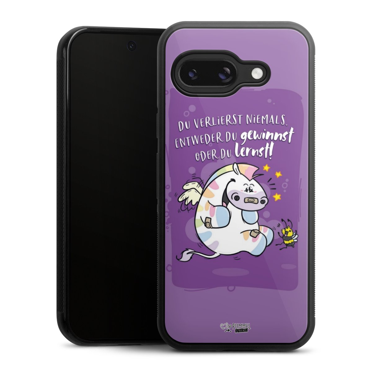 Wir drucken Dein Motiv auf die Rückseite des Glasinlays und verbinden es anschließend fest mit der Silikonhülle, sodass nichts übersteht und alles wie aus einem Guss wirkt. Außerdem ist das stabile Glaselement durch eine zusätzliche Beschichtung vor Kratzern geschützt und sorgt für eine leichte Reflexion auf dem brillanten Druckbild.