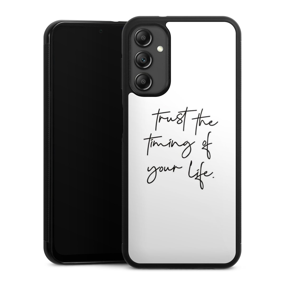 Wir drucken Dein Motiv auf die Rückseite des Glasinlays und verbinden es anschließend fest mit der Silikonhülle, sodass nichts übersteht und alles wie aus einem Guss wirkt. Außerdem ist das stabile Glaselement durch eine zusätzliche Beschichtung vor Kratzern geschützt und sorgt für eine leichte Reflexion auf dem brillanten Druckbild.