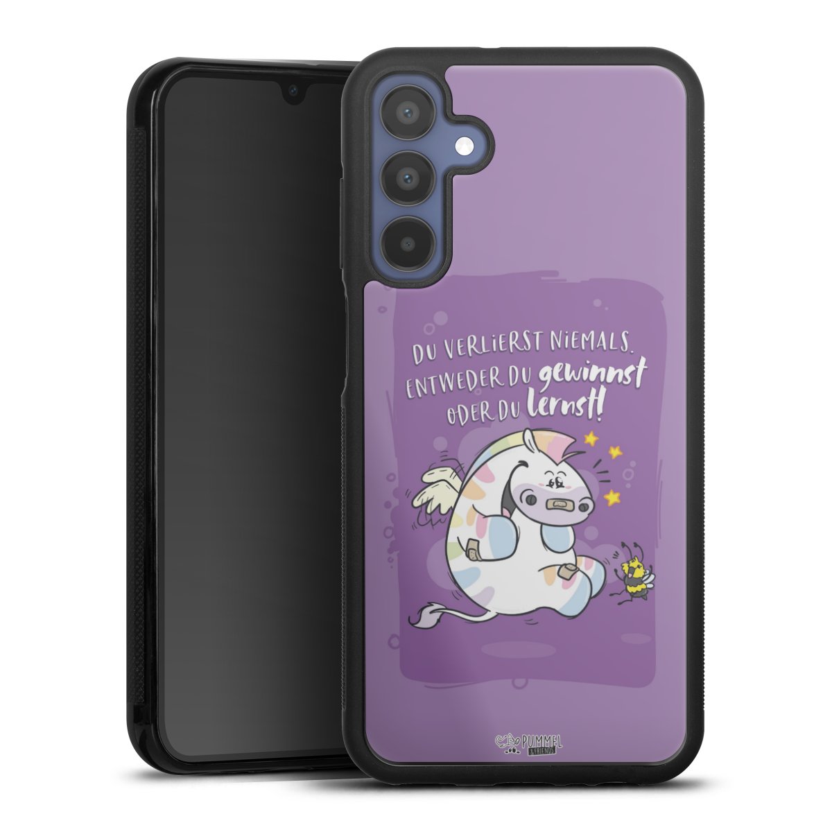 Wir drucken Dein Motiv auf die Rückseite des Glasinlays und verbinden es anschließend fest mit der Silikonhülle, sodass nichts übersteht und alles wie aus einem Guss wirkt. Außerdem ist das stabile Glaselement durch eine zusätzliche Beschichtung vor Kratzern geschützt und sorgt für eine leichte Reflexion auf dem brillanten Druckbild.