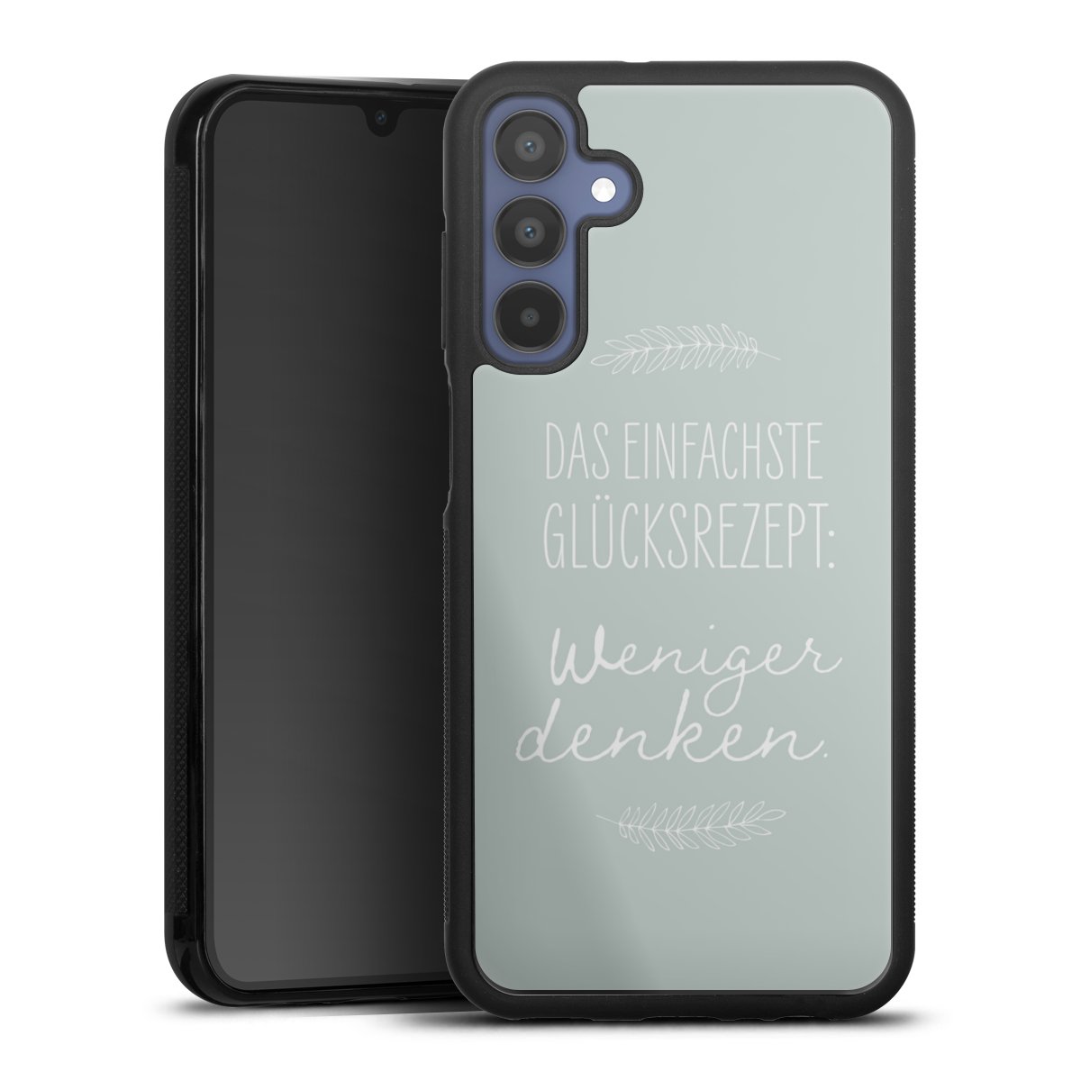 Wir drucken Dein Motiv auf die Rückseite des Glasinlays und verbinden es anschließend fest mit der Silikonhülle, sodass nichts übersteht und alles wie aus einem Guss wirkt. Außerdem ist das stabile Glaselement durch eine zusätzliche Beschichtung vor Kratzern geschützt und sorgt für eine leichte Reflexion auf dem brillanten Druckbild.