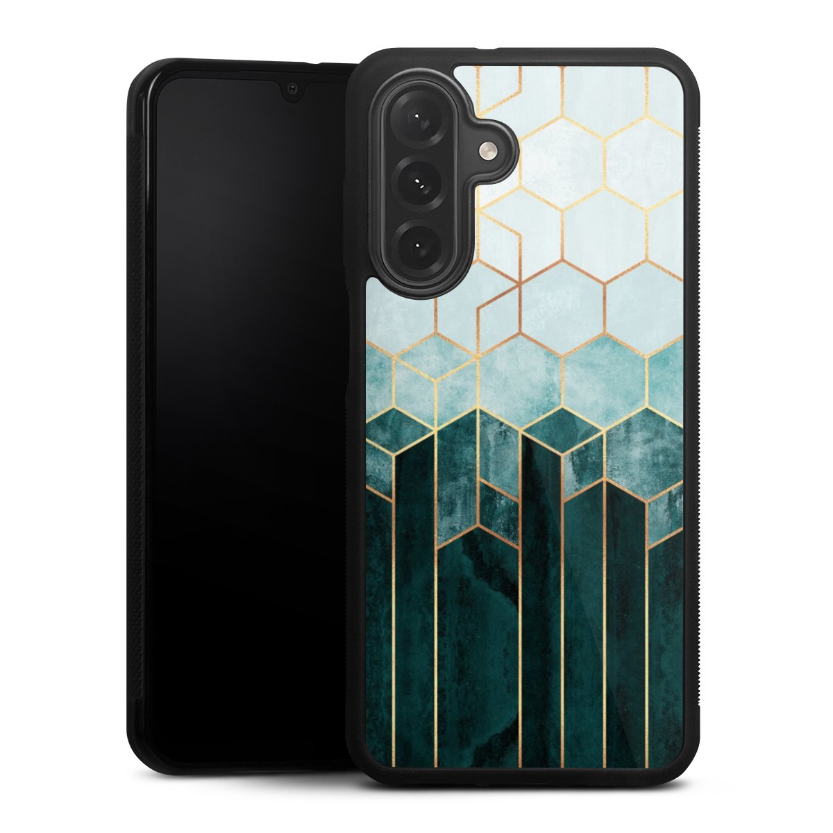 Der Kontrast aus mattschwarzem TPU an den Seiten und der glasglänzenden Oberfläche macht das Gallery Case nicht nur zur Augenweide, sondern auch zum echten Handschmeichler: Durch das Glas erhält die Handyhülle eine angenehm glatte Rückseite und der weiche Silikonrand sorgt für den nötigen Grip.