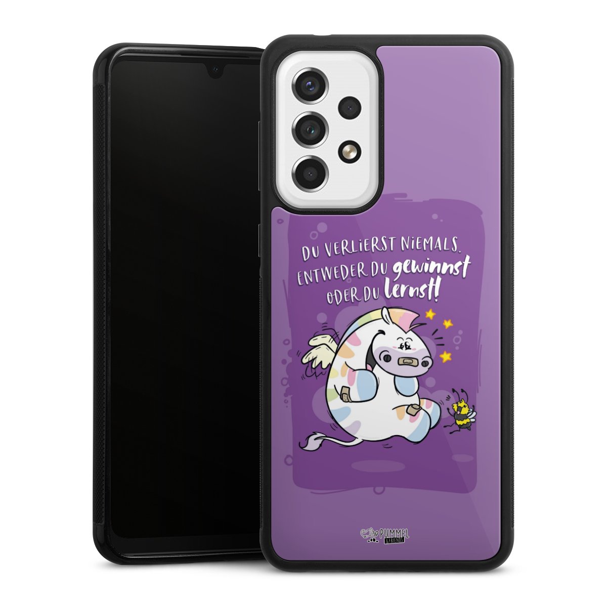 Wir drucken Dein Motiv auf die Rückseite des Glasinlays und verbinden es anschließend fest mit der Silikonhülle, sodass nichts übersteht und alles wie aus einem Guss wirkt. Außerdem ist das stabile Glaselement durch eine zusätzliche Beschichtung vor Kratzern geschützt und sorgt für eine leichte Reflexion auf dem brillanten Druckbild.