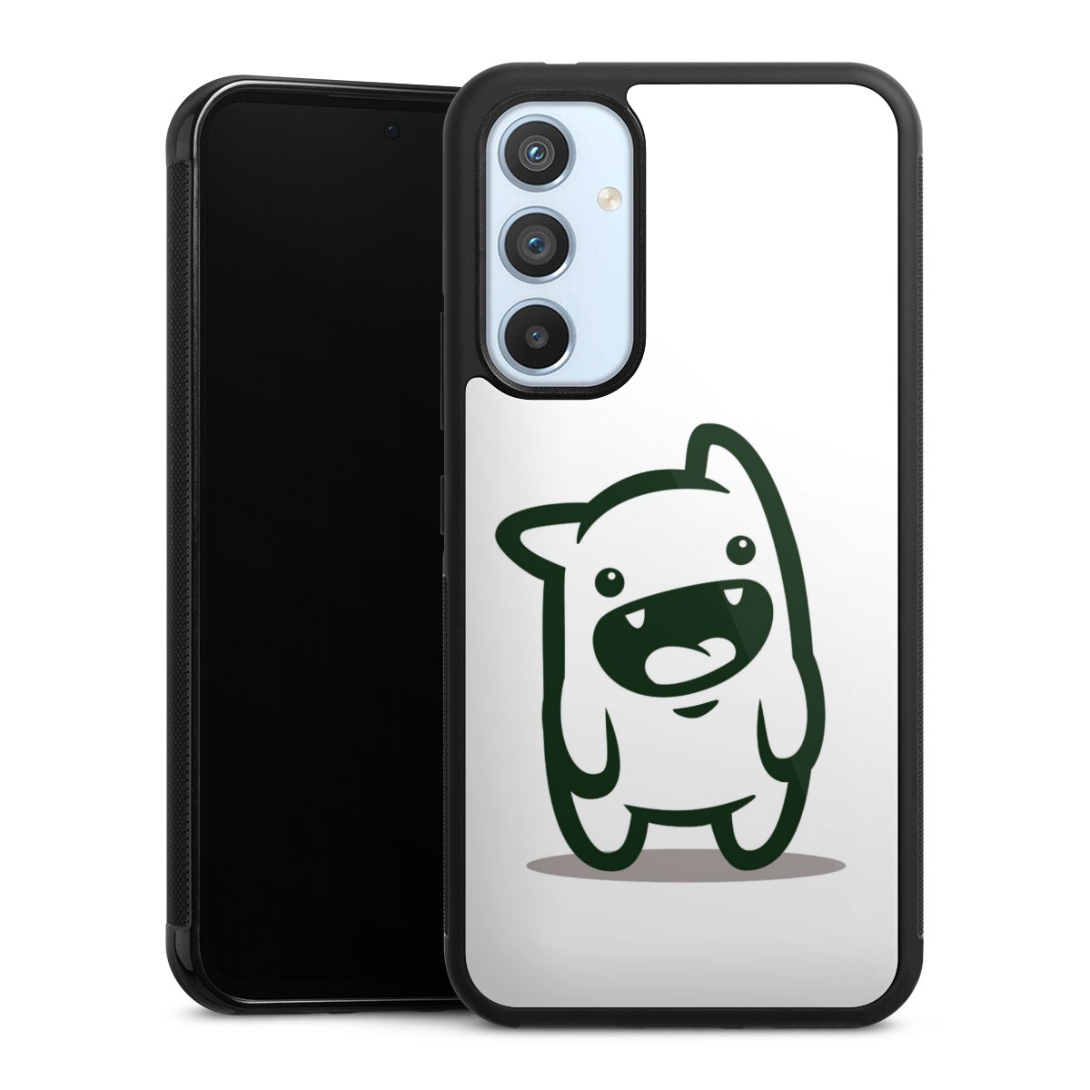 Wir drucken Dein Motiv auf die Rückseite des Glasinlays und verbinden es anschließend fest mit der Silikonhülle, sodass nichts übersteht und alles wie aus einem Guss wirkt. Außerdem ist das stabile Glaselement durch eine zusätzliche Beschichtung vor Kratzern geschützt und sorgt für eine leichte Reflexion auf dem brillanten Druckbild.