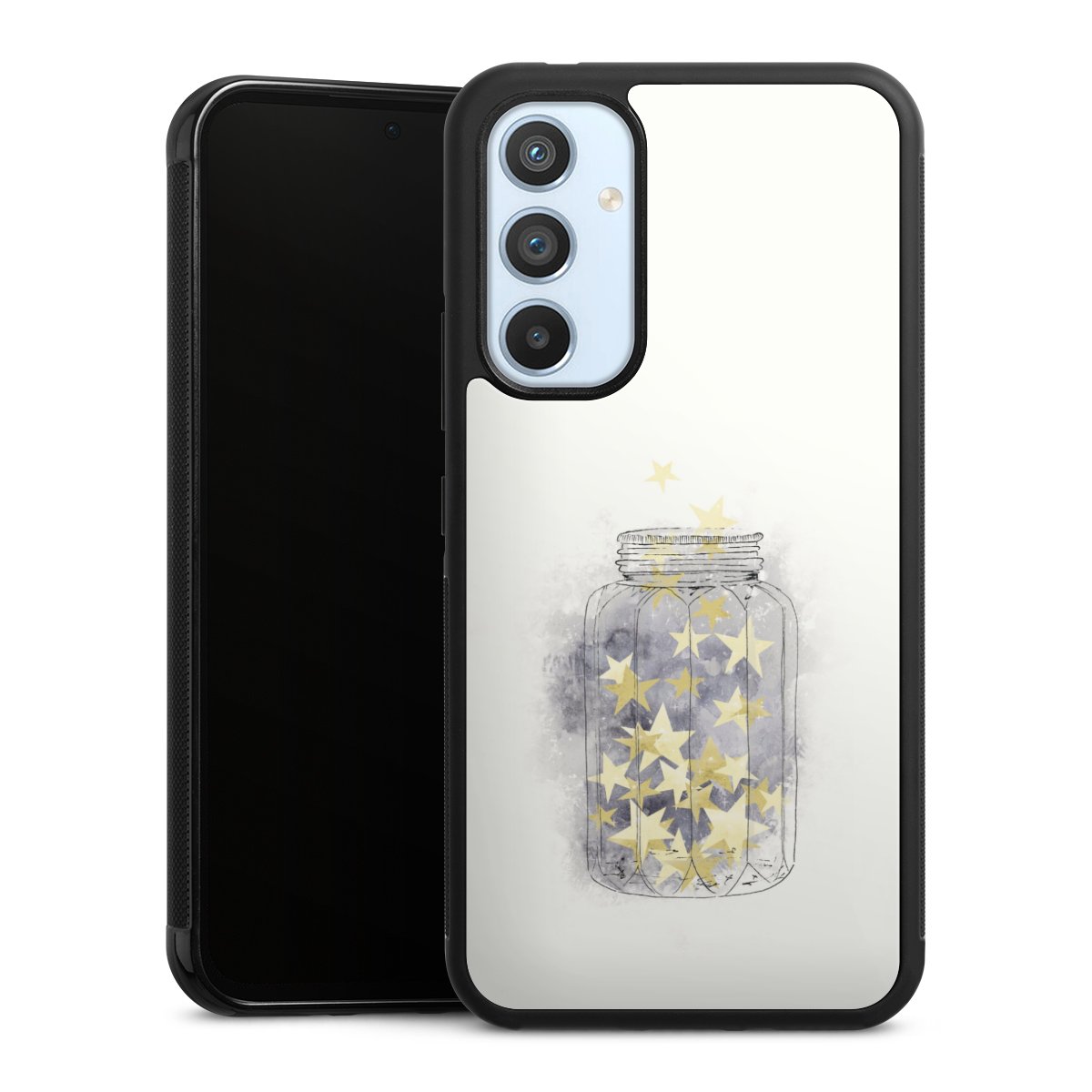 Wir drucken Dein Motiv auf die Rückseite des Glasinlays und verbinden es anschließend fest mit der Silikonhülle, sodass nichts übersteht und alles wie aus einem Guss wirkt. Außerdem ist das stabile Glaselement durch eine zusätzliche Beschichtung vor Kratzern geschützt und sorgt für eine leichte Reflexion auf dem brillanten Druckbild.
