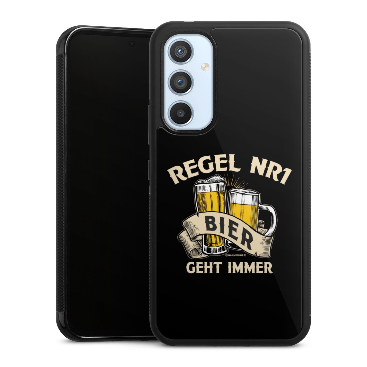 Wir drucken Dein Motiv auf die Rückseite des Glasinlays und verbinden es anschließend fest mit der Silikonhülle, sodass nichts übersteht und alles wie aus einem Guss wirkt. Außerdem ist das stabile Glaselement durch eine zusätzliche Beschichtung vor Kratzern geschützt und sorgt für eine leichte Reflexion auf dem brillanten Druckbild.
