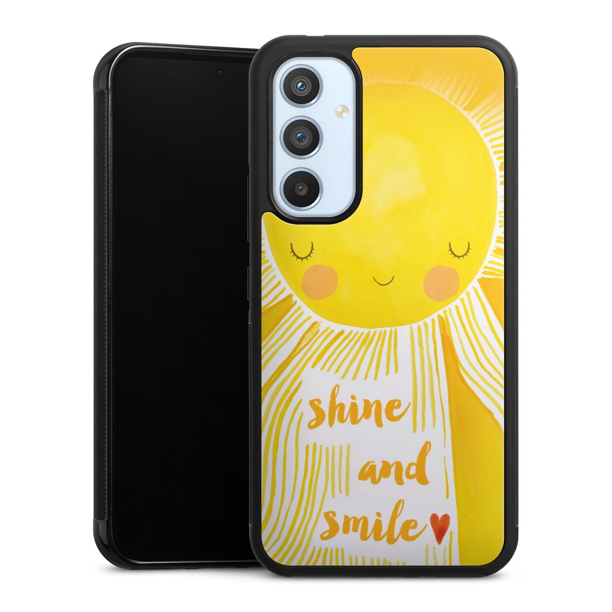 Wir drucken Dein Motiv auf die Rückseite des Glasinlays und verbinden es anschließend fest mit der Silikonhülle, sodass nichts übersteht und alles wie aus einem Guss wirkt. Außerdem ist das stabile Glaselement durch eine zusätzliche Beschichtung vor Kratzern geschützt und sorgt für eine leichte Reflexion auf dem brillanten Druckbild.