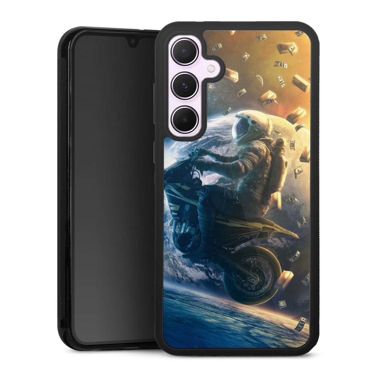 Wir drucken Dein Motiv auf die Rückseite des Glasinlays und verbinden es anschließend fest mit der Silikonhülle, sodass nichts übersteht und alles wie aus einem Guss wirkt. Außerdem ist das stabile Glaselement durch eine zusätzliche Beschichtung vor Kratzern geschützt und sorgt für eine leichte Reflexion auf dem brillanten Druckbild.