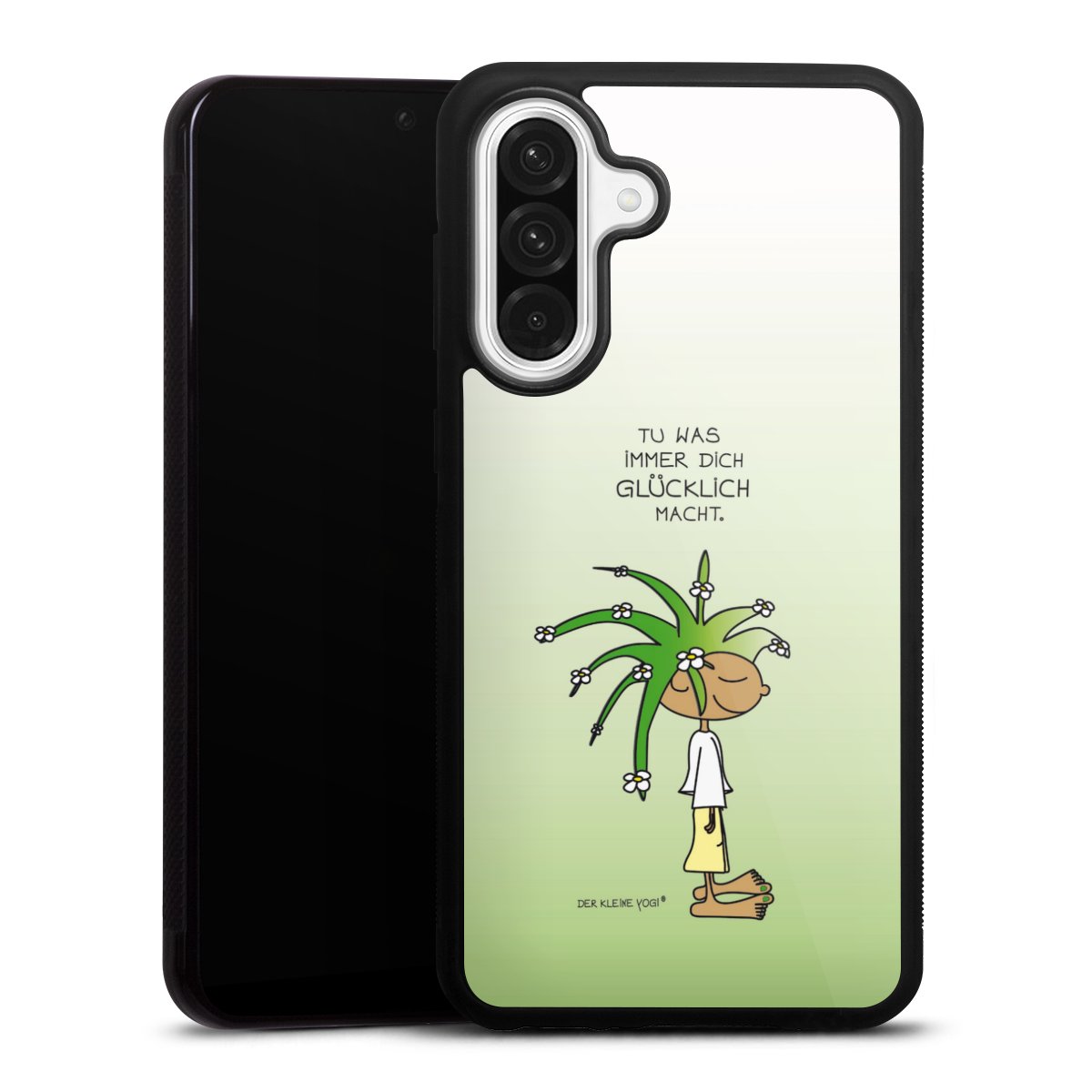 Wir drucken Dein Motiv auf die Rückseite des Glasinlays und verbinden es anschließend fest mit der Silikonhülle, sodass nichts übersteht und alles wie aus einem Guss wirkt. Außerdem ist das stabile Glaselement durch eine zusätzliche Beschichtung vor Kratzern geschützt und sorgt für eine leichte Reflexion auf dem brillanten Druckbild.