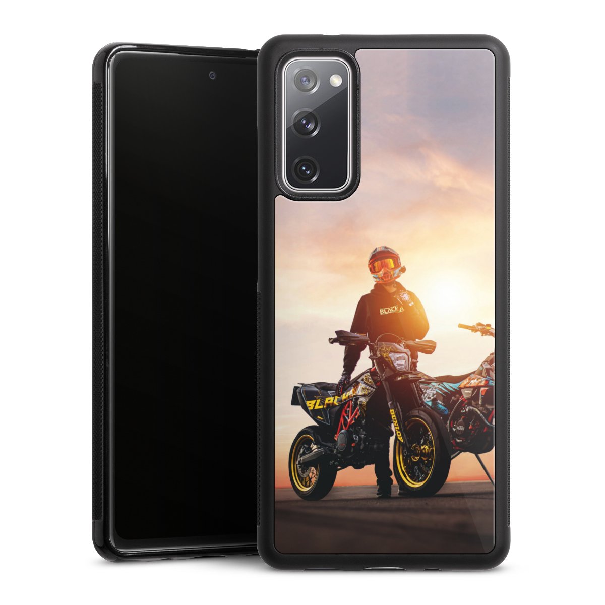 Wir drucken Dein Motiv auf die Rückseite des Glasinlays und verbinden es anschließend fest mit der Silikonhülle, sodass nichts übersteht und alles wie aus einem Guss wirkt. Außerdem ist das stabile Glaselement durch eine zusätzliche Beschichtung vor Kratzern geschützt und sorgt für eine leichte Reflexion auf dem brillanten Druckbild.