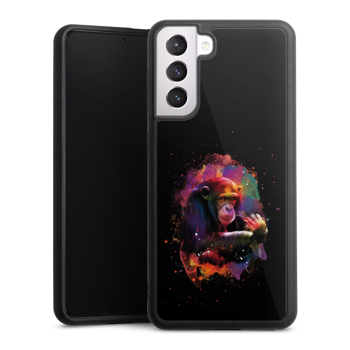 Wir drucken Dein Motiv auf die Rückseite des Glasinlays und verbinden es anschließend fest mit der Silikonhülle, sodass nichts übersteht und alles wie aus einem Guss wirkt. Außerdem ist das stabile Glaselement durch eine zusätzliche Beschichtung vor Kratzern geschützt und sorgt für eine leichte Reflexion auf dem brillanten Druckbild.
