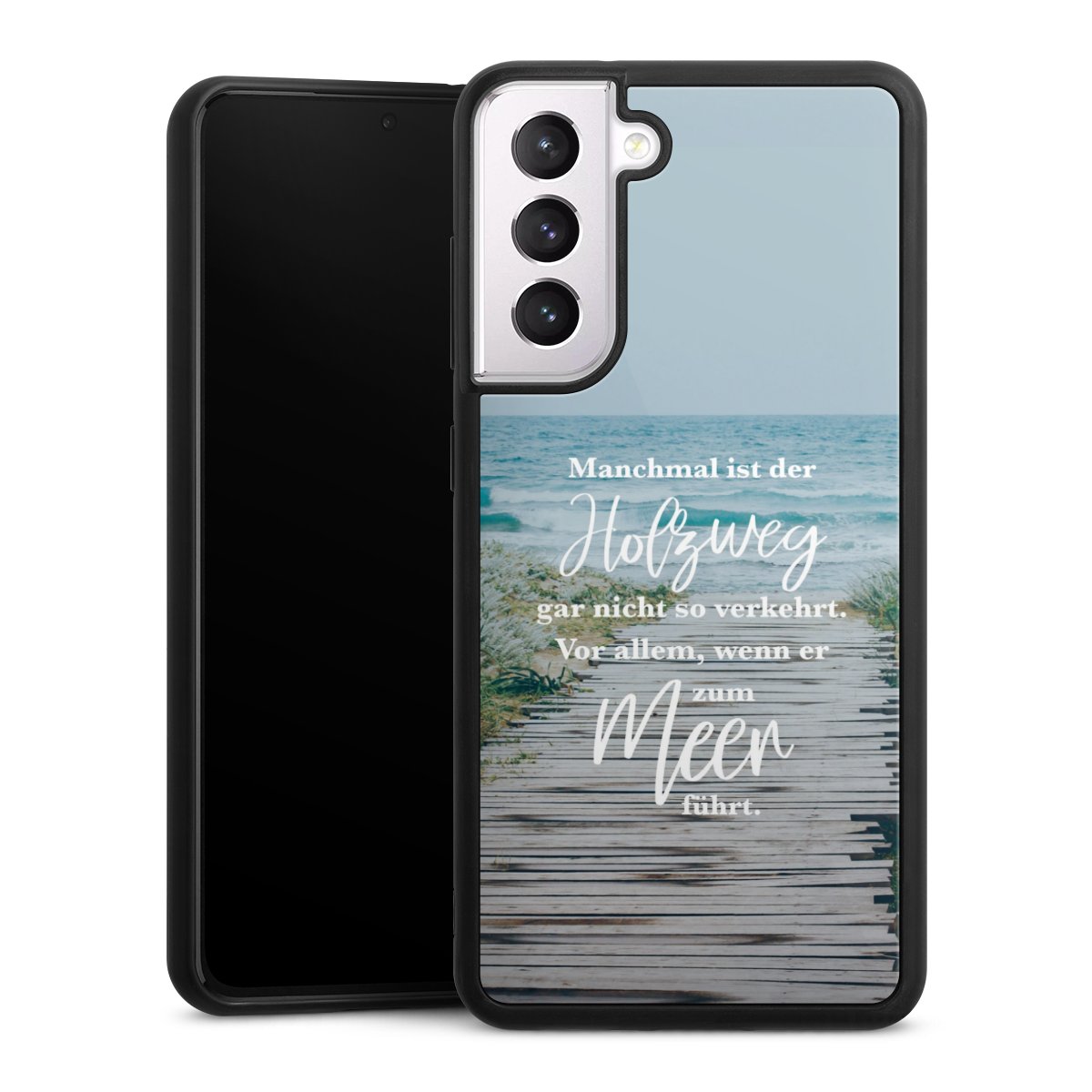 Wir drucken Dein Motiv auf die Rückseite des Glasinlays und verbinden es anschließend fest mit der Silikonhülle, sodass nichts übersteht und alles wie aus einem Guss wirkt. Außerdem ist das stabile Glaselement durch eine zusätzliche Beschichtung vor Kratzern geschützt und sorgt für eine leichte Reflexion auf dem brillanten Druckbild.