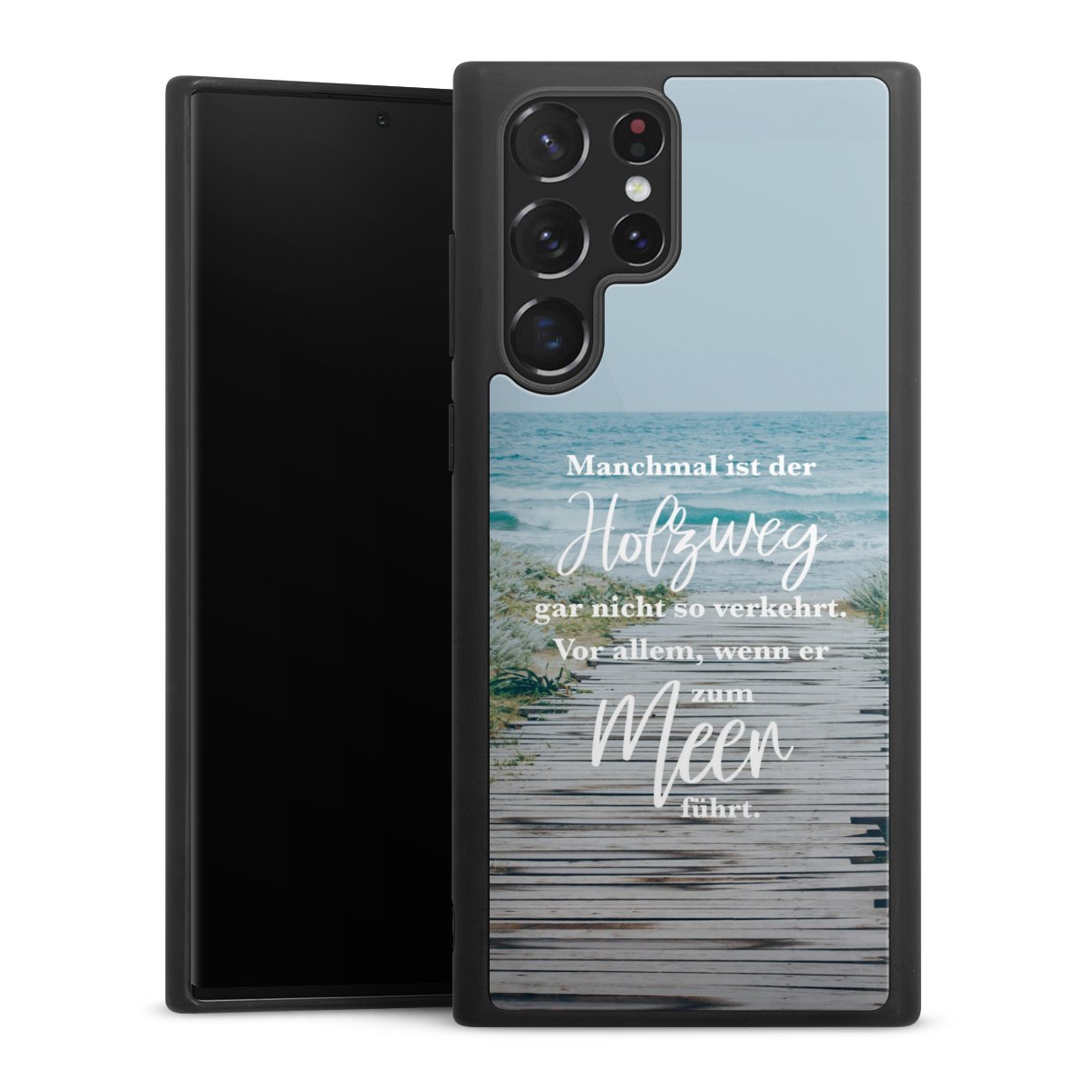 Wir drucken Dein Motiv auf die Rückseite des Glasinlays und verbinden es anschließend fest mit der Silikonhülle, sodass nichts übersteht und alles wie aus einem Guss wirkt. Außerdem ist das stabile Glaselement durch eine zusätzliche Beschichtung vor Kratzern geschützt und sorgt für eine leichte Reflexion auf dem brillanten Druckbild.