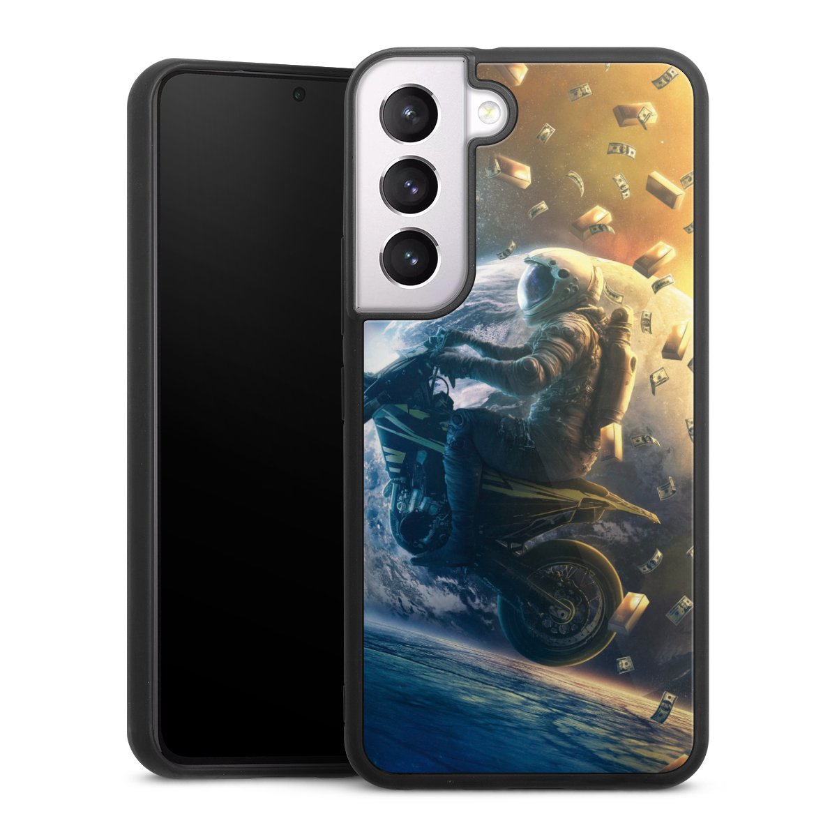 Wir drucken Dein Motiv auf die Rückseite des Glasinlays und verbinden es anschließend fest mit der Silikonhülle, sodass nichts übersteht und alles wie aus einem Guss wirkt. Außerdem ist das stabile Glaselement durch eine zusätzliche Beschichtung vor Kratzern geschützt und sorgt für eine leichte Reflexion auf dem brillanten Druckbild.