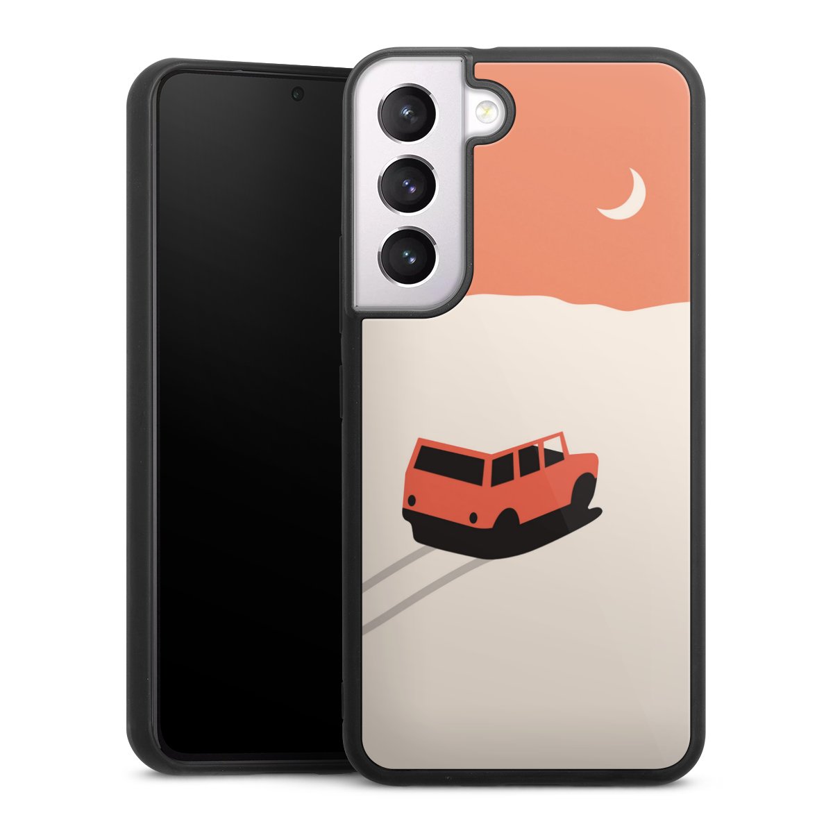 Wir drucken Dein Motiv auf die Rückseite des Glasinlays und verbinden es anschließend fest mit der Silikonhülle, sodass nichts übersteht und alles wie aus einem Guss wirkt. Außerdem ist das stabile Glaselement durch eine zusätzliche Beschichtung vor Kratzern geschützt und sorgt für eine leichte Reflexion auf dem brillanten Druckbild.