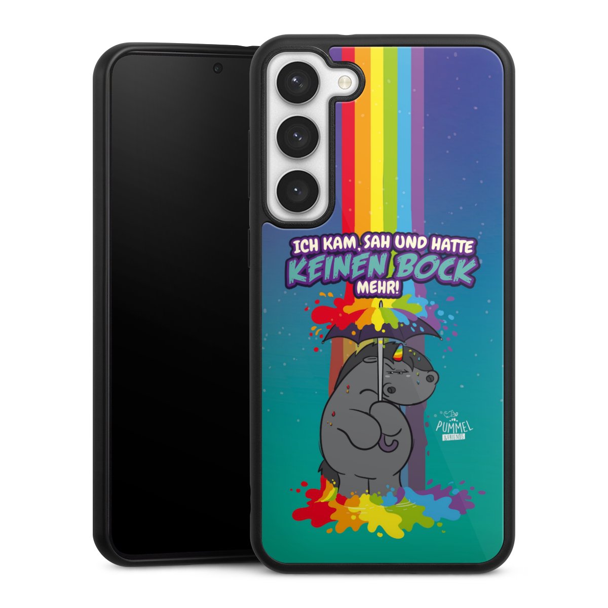 Wir drucken Dein Motiv auf die Rückseite des Glasinlays und verbinden es anschließend fest mit der Silikonhülle, sodass nichts übersteht und alles wie aus einem Guss wirkt. Außerdem ist das stabile Glaselement durch eine zusätzliche Beschichtung vor Kratzern geschützt und sorgt für eine leichte Reflexion auf dem brillanten Druckbild.