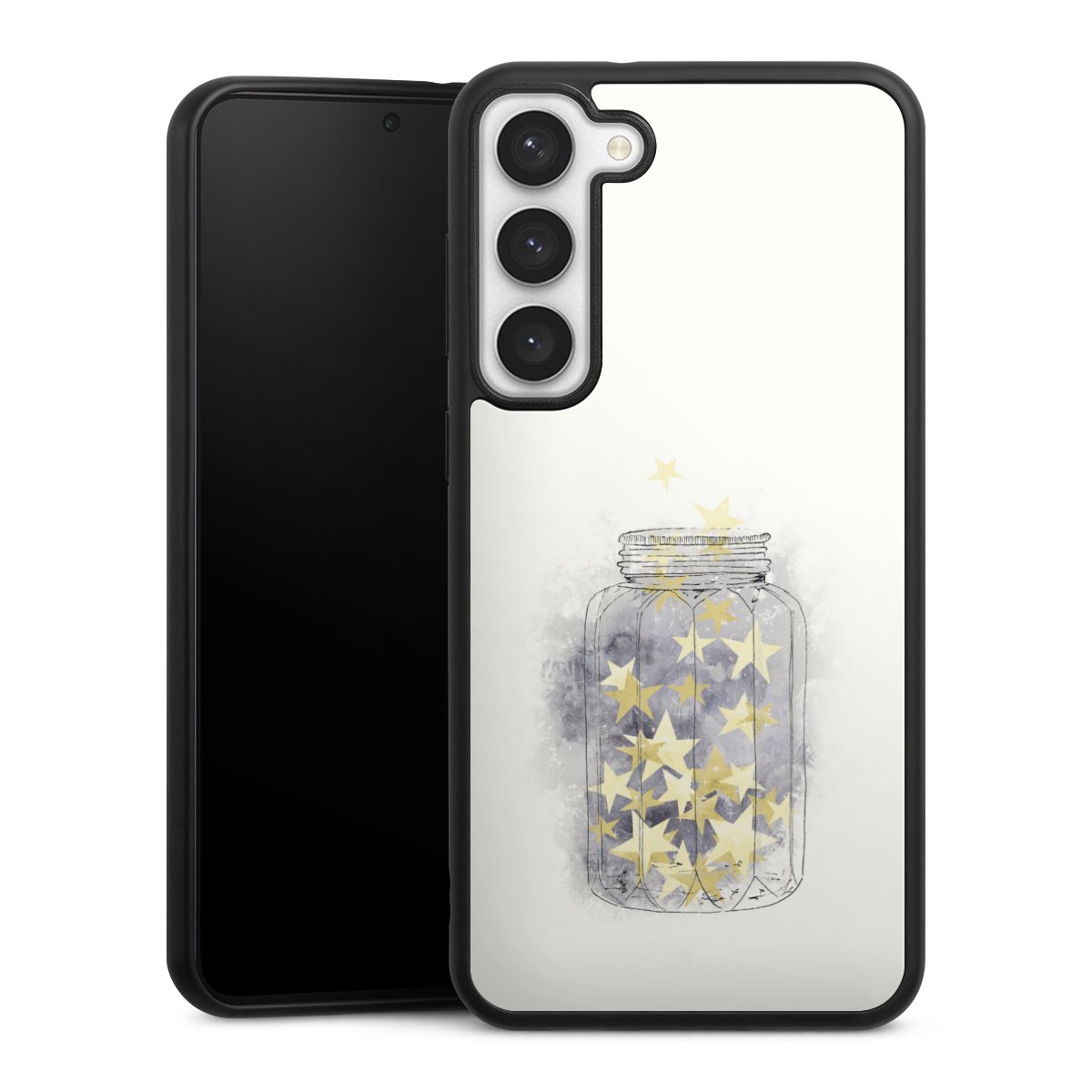 Wir drucken Dein Motiv auf die Rückseite des Glasinlays und verbinden es anschließend fest mit der Silikonhülle, sodass nichts übersteht und alles wie aus einem Guss wirkt. Außerdem ist das stabile Glaselement durch eine zusätzliche Beschichtung vor Kratzern geschützt und sorgt für eine leichte Reflexion auf dem brillanten Druckbild.