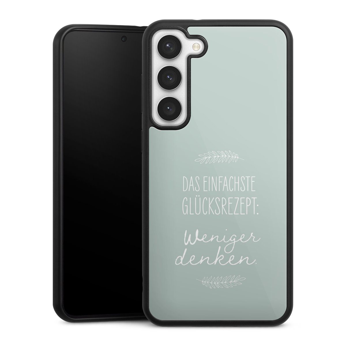Wir drucken Dein Motiv auf die Rückseite des Glasinlays und verbinden es anschließend fest mit der Silikonhülle, sodass nichts übersteht und alles wie aus einem Guss wirkt. Außerdem ist das stabile Glaselement durch eine zusätzliche Beschichtung vor Kratzern geschützt und sorgt für eine leichte Reflexion auf dem brillanten Druckbild.