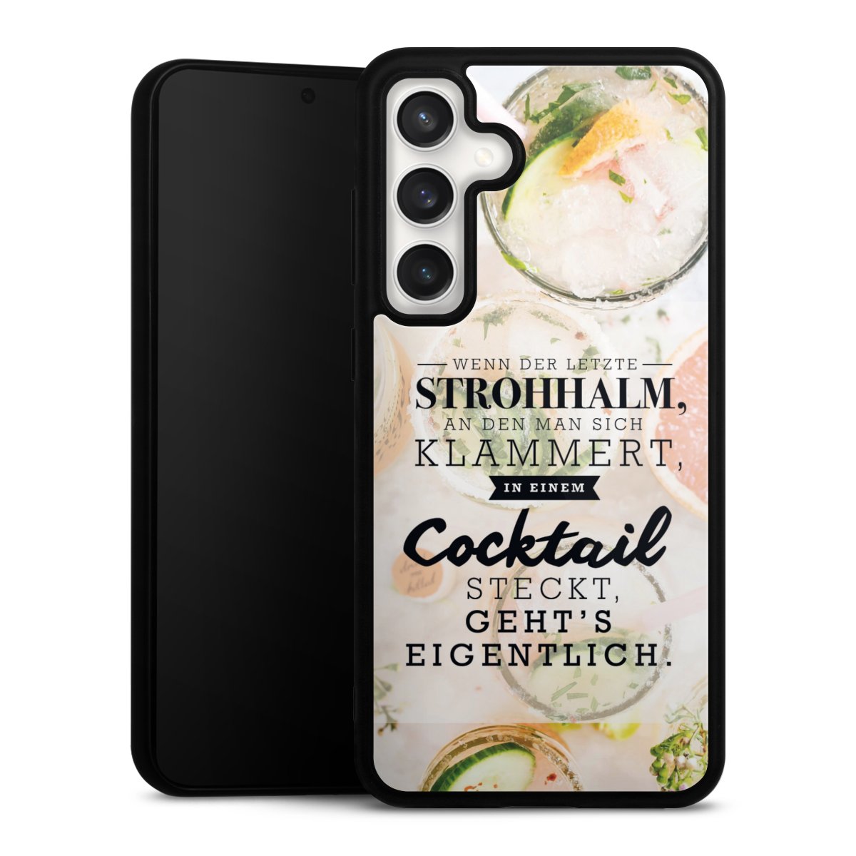 Wir drucken Dein Motiv auf die Rückseite des Glasinlays und verbinden es anschließend fest mit der Silikonhülle, sodass nichts übersteht und alles wie aus einem Guss wirkt. Außerdem ist das stabile Glaselement durch eine zusätzliche Beschichtung vor Kratzern geschützt und sorgt für eine leichte Reflexion auf dem brillanten Druckbild.