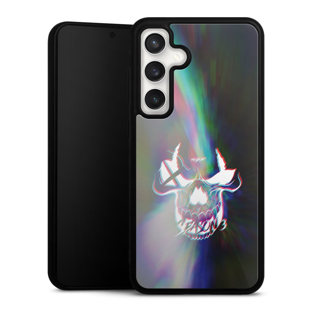 Wir drucken Dein Motiv auf die Rückseite des Glasinlays und verbinden es anschließend fest mit der Silikonhülle, sodass nichts übersteht und alles wie aus einem Guss wirkt. Außerdem ist das stabile Glaselement durch eine zusätzliche Beschichtung vor Kratzern geschützt und sorgt für eine leichte Reflexion auf dem brillanten Druckbild.