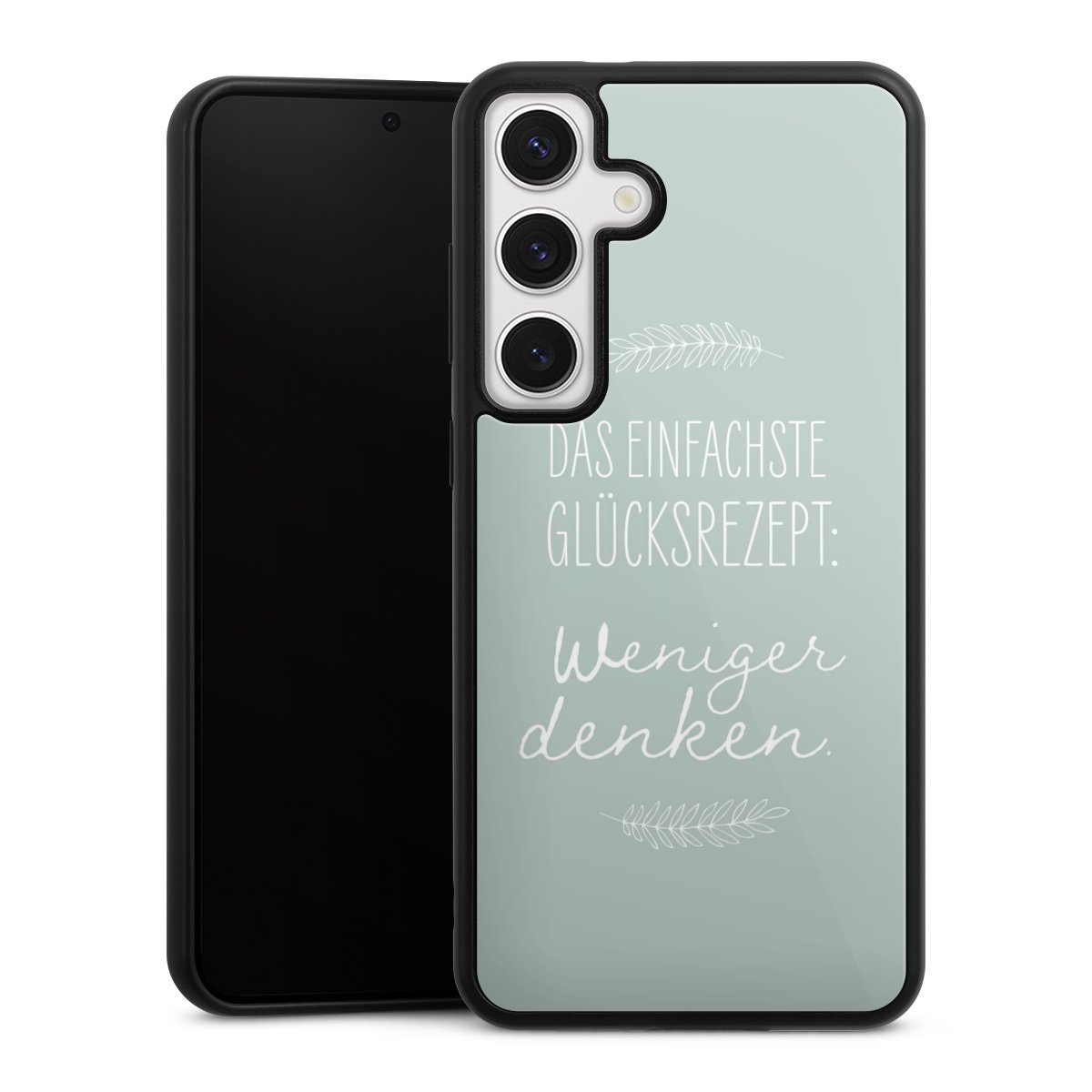 Wir drucken Dein Motiv auf die Rückseite des Glasinlays und verbinden es anschließend fest mit der Silikonhülle, sodass nichts übersteht und alles wie aus einem Guss wirkt. Außerdem ist das stabile Glaselement durch eine zusätzliche Beschichtung vor Kratzern geschützt und sorgt für eine leichte Reflexion auf dem brillanten Druckbild.