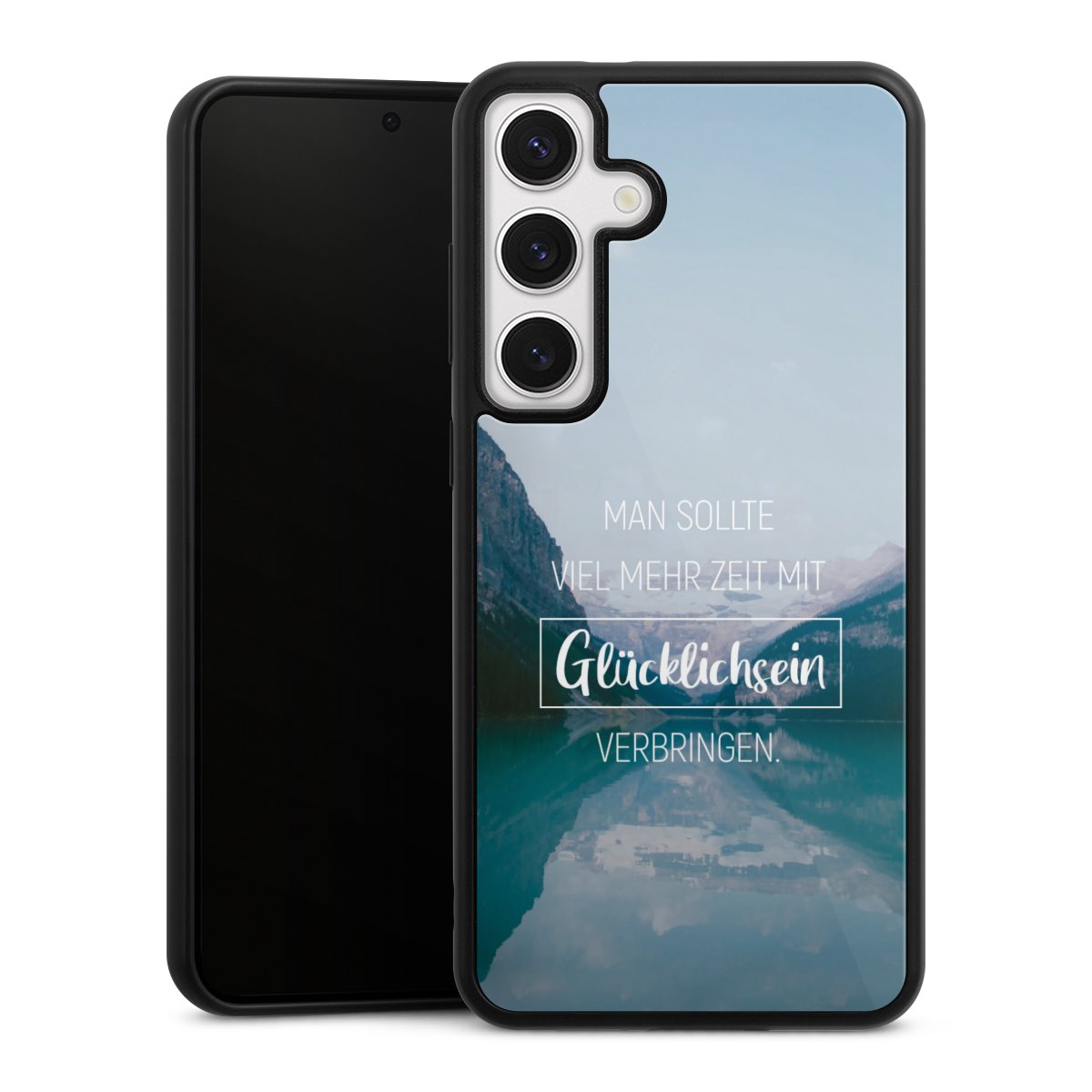 Wir drucken Dein Motiv auf die Rückseite des Glasinlays und verbinden es anschließend fest mit der Silikonhülle, sodass nichts übersteht und alles wie aus einem Guss wirkt. Außerdem ist das stabile Glaselement durch eine zusätzliche Beschichtung vor Kratzern geschützt und sorgt für eine leichte Reflexion auf dem brillanten Druckbild.