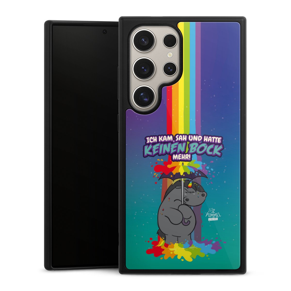Wir drucken Dein Motiv auf die Rückseite des Glasinlays und verbinden es anschließend fest mit der Silikonhülle, sodass nichts übersteht und alles wie aus einem Guss wirkt. Außerdem ist das stabile Glaselement durch eine zusätzliche Beschichtung vor Kratzern geschützt und sorgt für eine leichte Reflexion auf dem brillanten Druckbild.