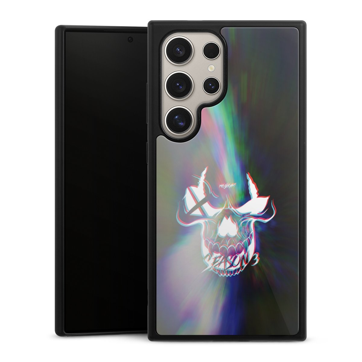 Wir drucken Dein Motiv auf die Rückseite des Glasinlays und verbinden es anschließend fest mit der Silikonhülle, sodass nichts übersteht und alles wie aus einem Guss wirkt. Außerdem ist das stabile Glaselement durch eine zusätzliche Beschichtung vor Kratzern geschützt und sorgt für eine leichte Reflexion auf dem brillanten Druckbild.