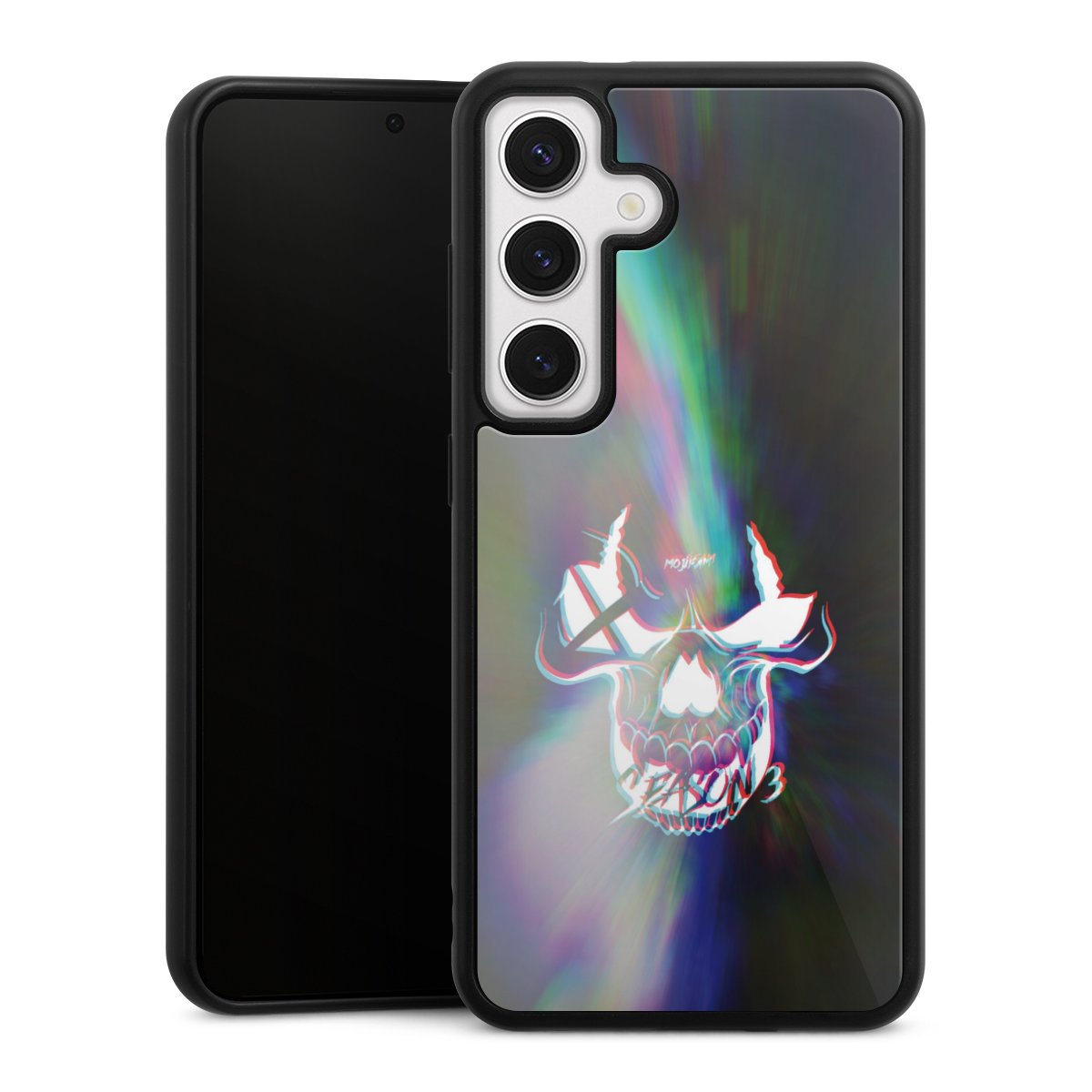 Wir drucken Dein Motiv auf die Rückseite des Glasinlays und verbinden es anschließend fest mit der Silikonhülle, sodass nichts übersteht und alles wie aus einem Guss wirkt. Außerdem ist das stabile Glaselement durch eine zusätzliche Beschichtung vor Kratzern geschützt und sorgt für eine leichte Reflexion auf dem brillanten Druckbild.