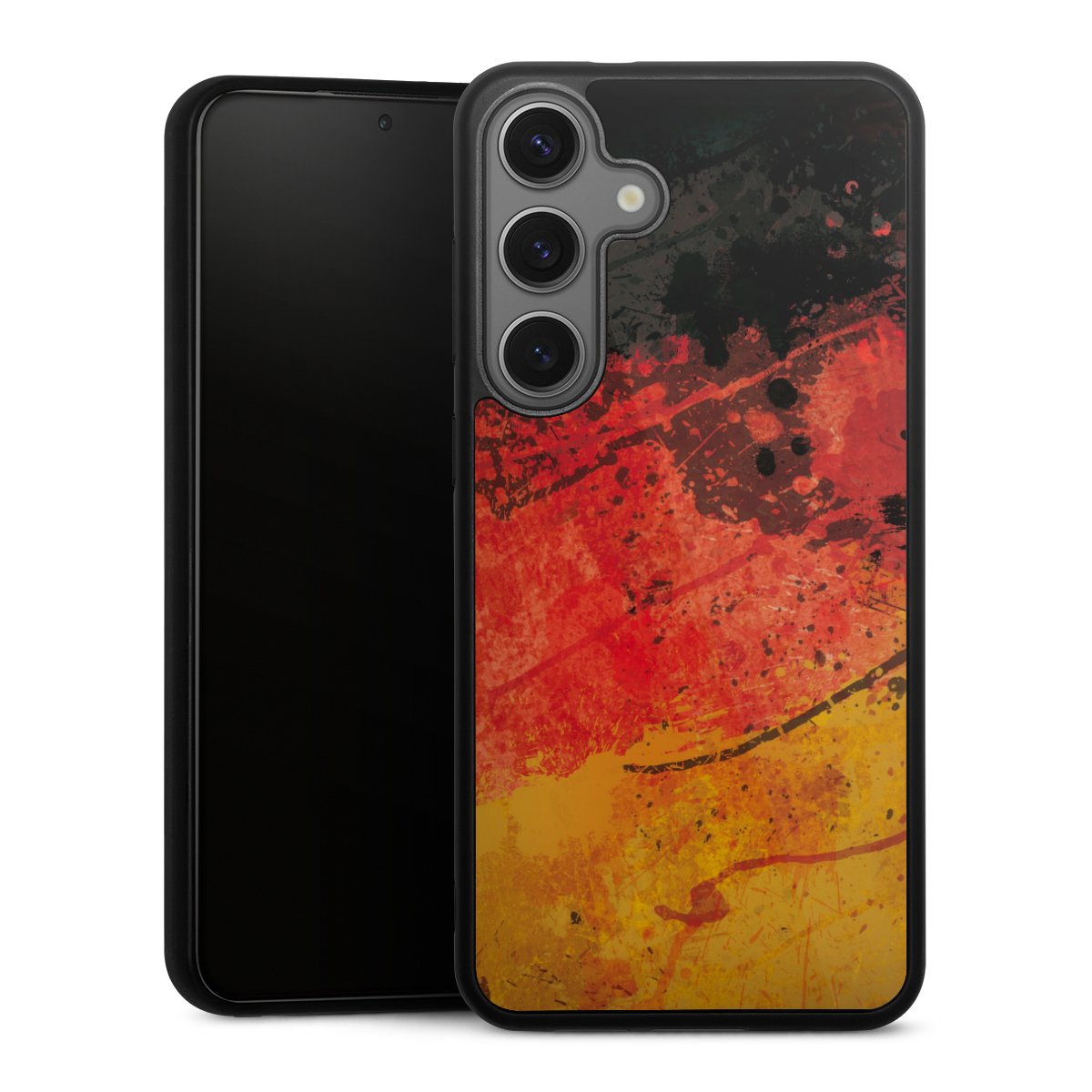 Wir drucken Dein Motiv auf die Rückseite des Glasinlays und verbinden es anschließend fest mit der Silikonhülle, sodass nichts übersteht und alles wie aus einem Guss wirkt. Außerdem ist das stabile Glaselement durch eine zusätzliche Beschichtung vor Kratzern geschützt und sorgt für eine leichte Reflexion auf dem brillanten Druckbild.