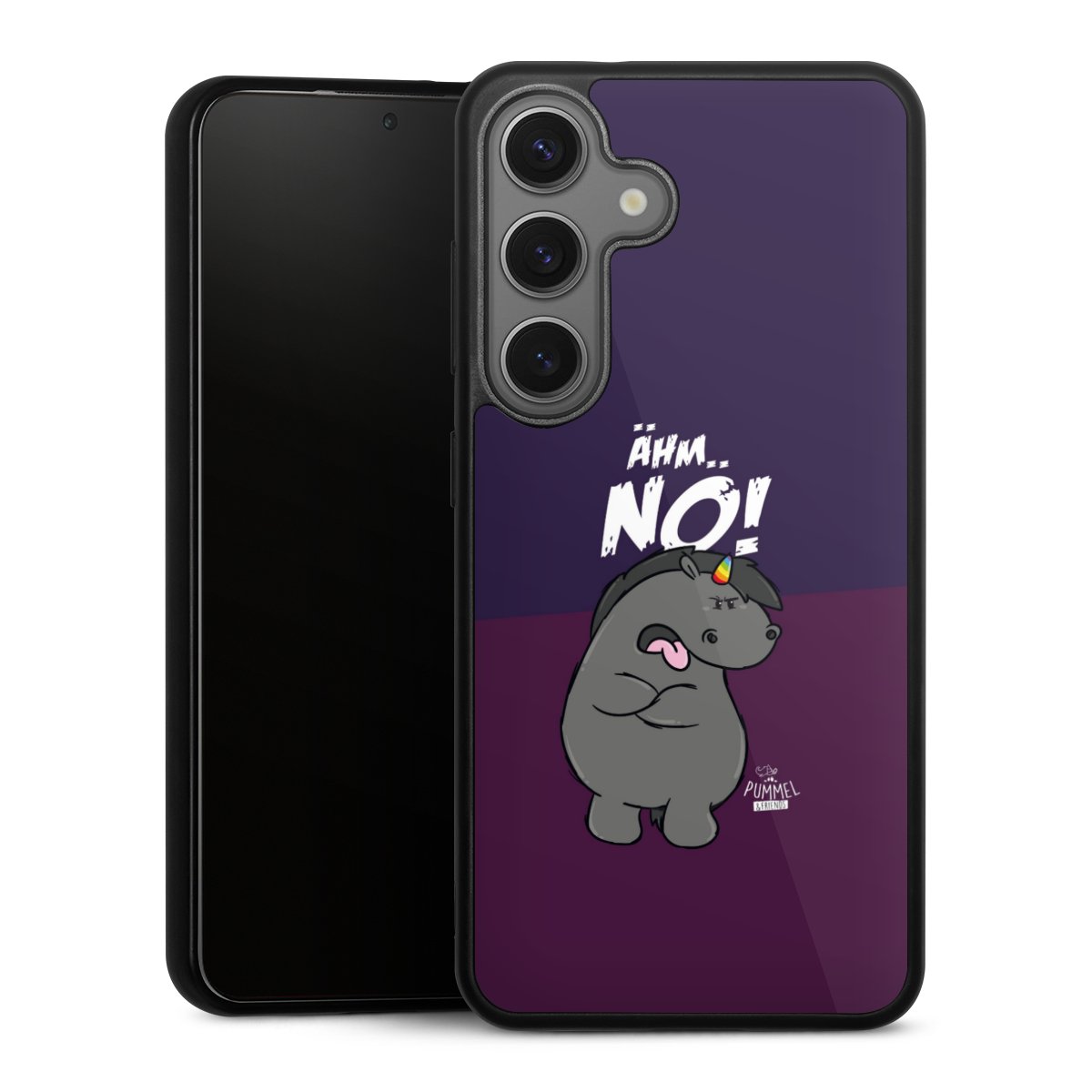 Wir drucken Dein Motiv auf die Rückseite des Glasinlays und verbinden es anschließend fest mit der Silikonhülle, sodass nichts übersteht und alles wie aus einem Guss wirkt. Außerdem ist das stabile Glaselement durch eine zusätzliche Beschichtung vor Kratzern geschützt und sorgt für eine leichte Reflexion auf dem brillanten Druckbild.