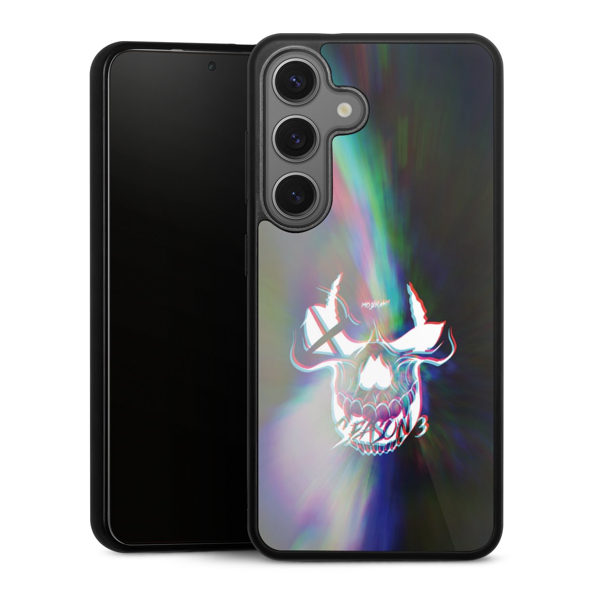 Wir drucken Dein Motiv auf die Rückseite des Glasinlays und verbinden es anschließend fest mit der Silikonhülle, sodass nichts übersteht und alles wie aus einem Guss wirkt. Außerdem ist das stabile Glaselement durch eine zusätzliche Beschichtung vor Kratzern geschützt und sorgt für eine leichte Reflexion auf dem brillanten Druckbild.