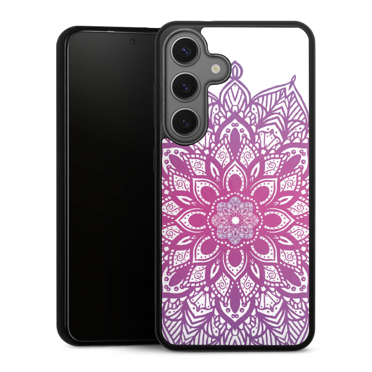 Wir drucken Dein Motiv auf die Rückseite des Glasinlays und verbinden es anschließend fest mit der Silikonhülle, sodass nichts übersteht und alles wie aus einem Guss wirkt. Außerdem ist das stabile Glaselement durch eine zusätzliche Beschichtung vor Kratzern geschützt und sorgt für eine leichte Reflexion auf dem brillanten Druckbild.