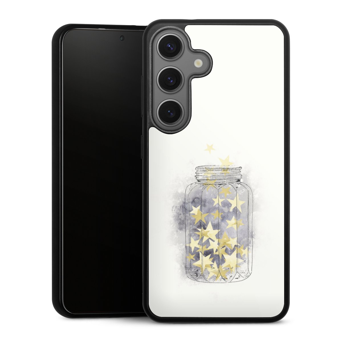 Wir drucken Dein Motiv auf die Rückseite des Glasinlays und verbinden es anschließend fest mit der Silikonhülle, sodass nichts übersteht und alles wie aus einem Guss wirkt. Außerdem ist das stabile Glaselement durch eine zusätzliche Beschichtung vor Kratzern geschützt und sorgt für eine leichte Reflexion auf dem brillanten Druckbild.
