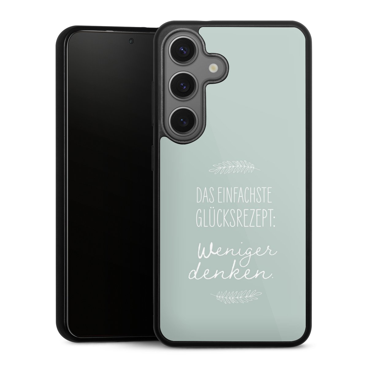 Wir drucken Dein Motiv auf die Rückseite des Glasinlays und verbinden es anschließend fest mit der Silikonhülle, sodass nichts übersteht und alles wie aus einem Guss wirkt. Außerdem ist das stabile Glaselement durch eine zusätzliche Beschichtung vor Kratzern geschützt und sorgt für eine leichte Reflexion auf dem brillanten Druckbild.