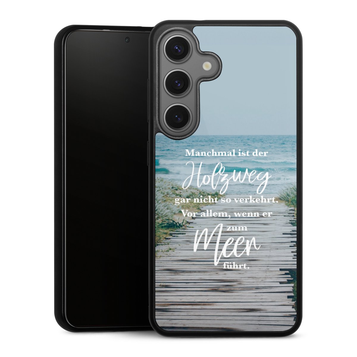 Wir drucken Dein Motiv auf die Rückseite des Glasinlays und verbinden es anschließend fest mit der Silikonhülle, sodass nichts übersteht und alles wie aus einem Guss wirkt. Außerdem ist das stabile Glaselement durch eine zusätzliche Beschichtung vor Kratzern geschützt und sorgt für eine leichte Reflexion auf dem brillanten Druckbild.