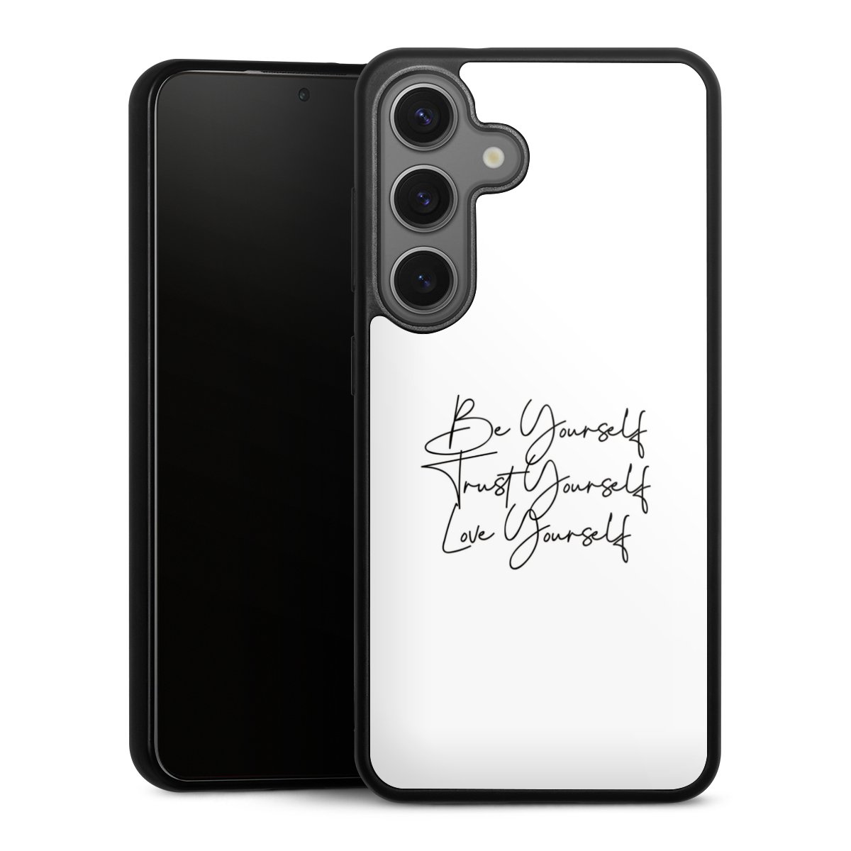 Wir drucken Dein Motiv auf die Rückseite des Glasinlays und verbinden es anschließend fest mit der Silikonhülle, sodass nichts übersteht und alles wie aus einem Guss wirkt. Außerdem ist das stabile Glaselement durch eine zusätzliche Beschichtung vor Kratzern geschützt und sorgt für eine leichte Reflexion auf dem brillanten Druckbild.