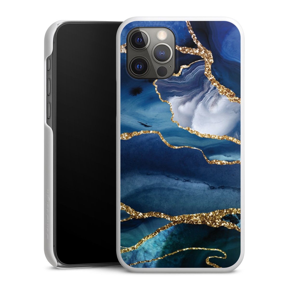 Blauer Marmor Gold Glitzer Look
