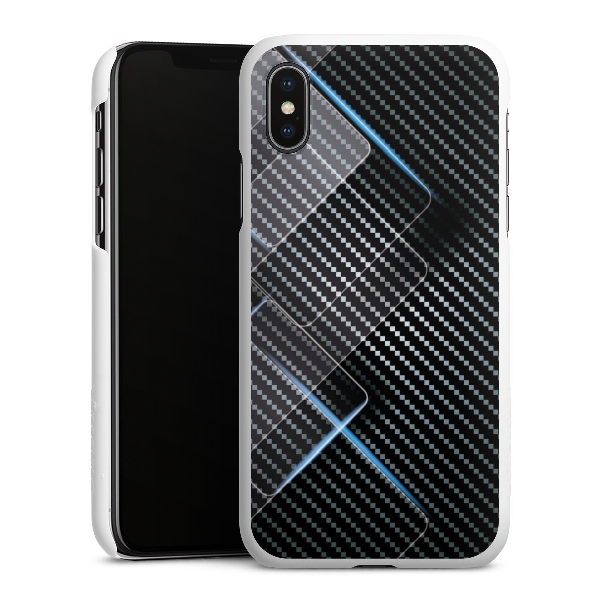 Blaue Linien auf Karbon