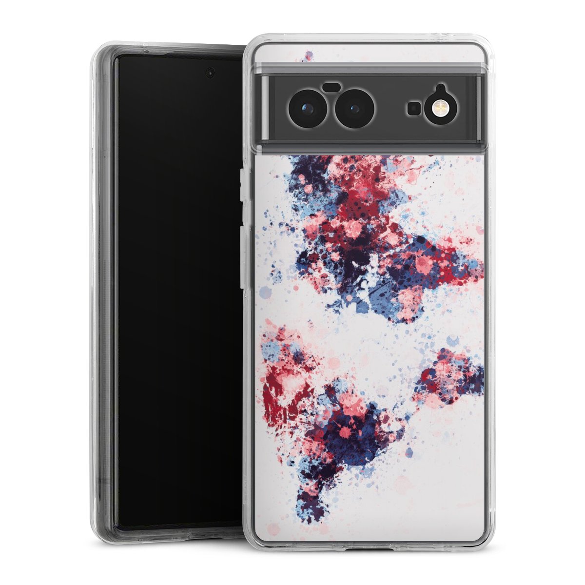 Weltkarte Farbenspritzer Blau Rot