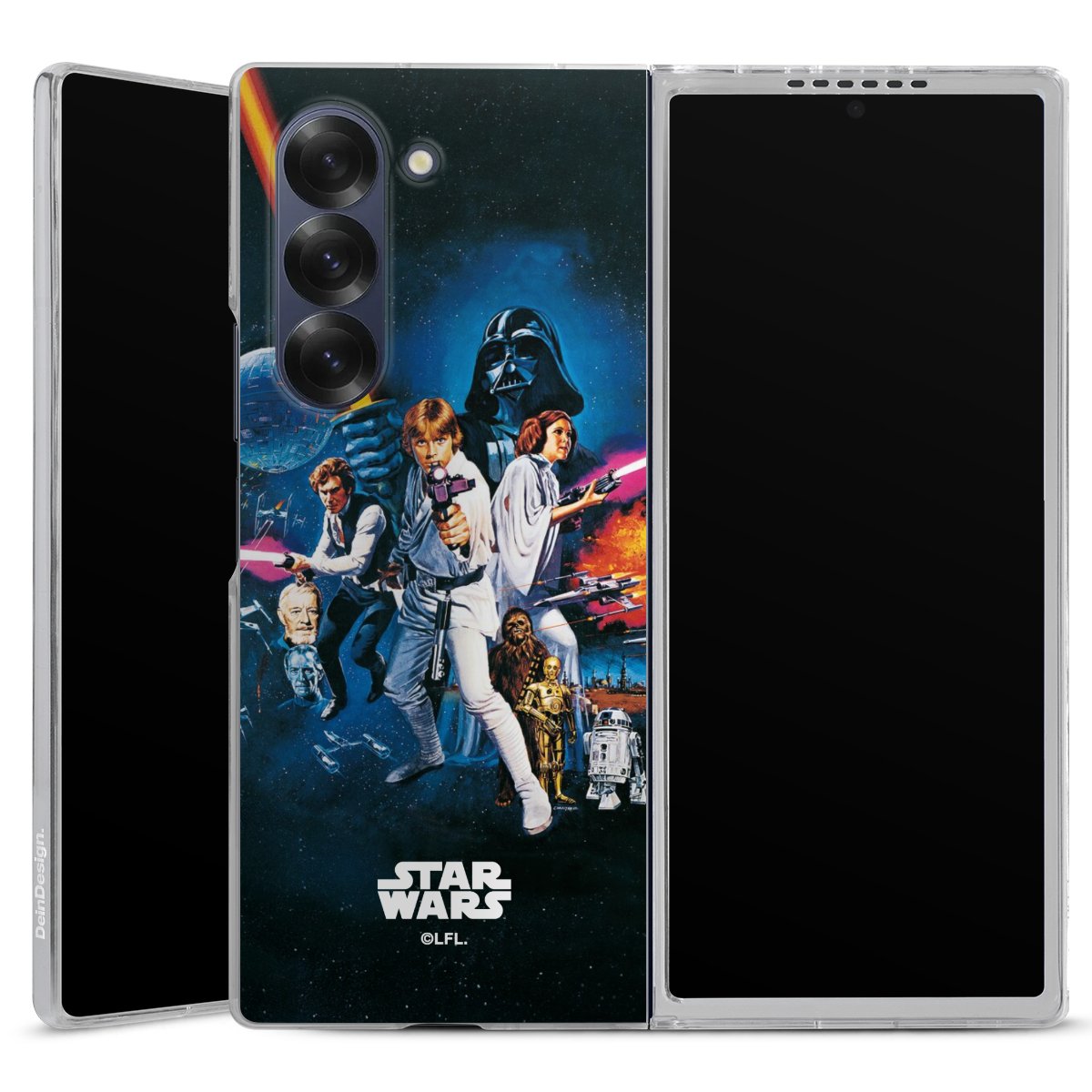 Darth Vader, C3PO, R2D2 und Meister Yoda findest Du in unserem Star Wars Shop auf DeinDesign. Natürlich gibt es auch Star Wars Handyhüllen mit den legendären Charakteren Luke Skywalker, Prinzessin Leia und Han Solo, den Helden der ersten Saga. Wer jedoch die Hauptfiguren der neuen Star Wars Filme ins Herz geschlossen hat, kann auch Finn und Rey mit ihren mächtigen Waffen auf der Rückseite seines Smartphones haben. Die vielseitigen Schutzhüllen in verschiedenen Ausführungen sind das perfekte Geschenk für alle Star Wars Fans, die ihrem Smartphone eine individuelle Note verleihen wollen.
