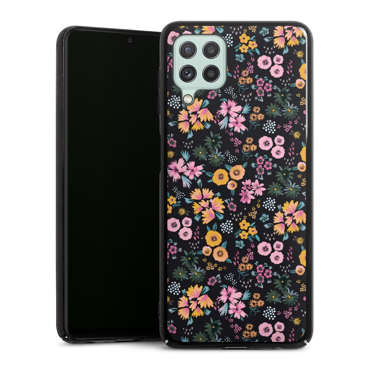 Kleine bunte Blumen Schwarz 2