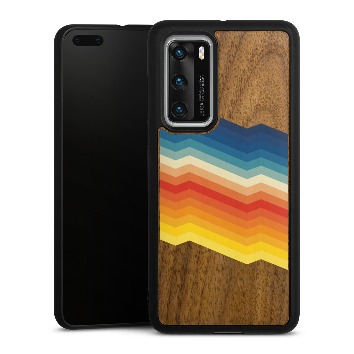 Die Rückseite der edlen Holzhülle besteht aus Echtholz und wird durch einen Rahmen aus hochwertigem PC (Polycarbonat) eingefasst. Durch die Kombination der beiden Materialien entsteht ein dünnes und dennoch hochwertiges Endprodukt, das durch Natürlichkeit und Schutz glänzen kann. Durch eine wechselnde Holzmaserung ist jedes Stück ein Unikat. Die Handyhülle ist in den Varianten Walnuss, Bambus und Weiße Eiche erhältlich.