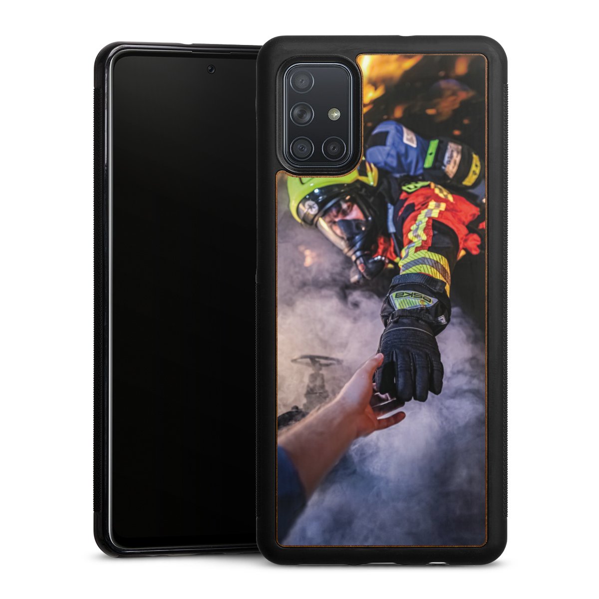 Feuerwehrmann greift nach der Hand