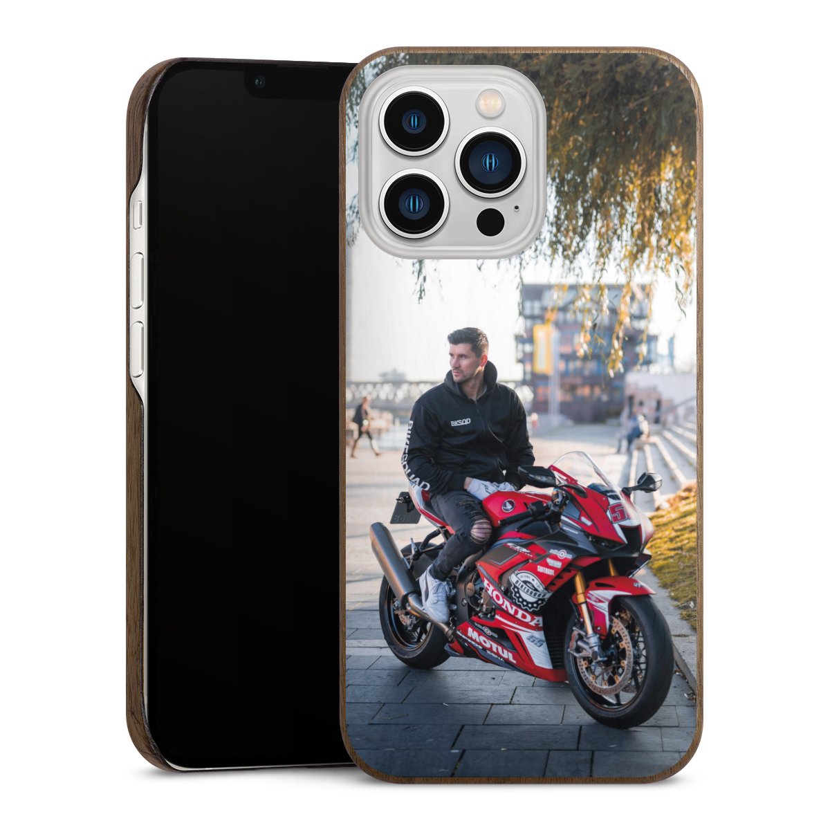 Die edle Holzhülle besteht aus robustem Echtholz mit einem außergewöhnlich stabilen Kern aus Kohlefasern. Durch die Kombination der beiden Materialien entsteht ein dünnes, dennoch hochwertiges und und durch die Verstärkung mit Kohlefasern robustes Endprodukt, das durch Natürlichkeit und Schutz glänzen kann. Durch eine wechselnde Holzmaserung ist jedes Stück ein Unikat. Die Handyhülle ist in den Varianten Walnuss, Bambus und Weiße Eiche erhältlich.