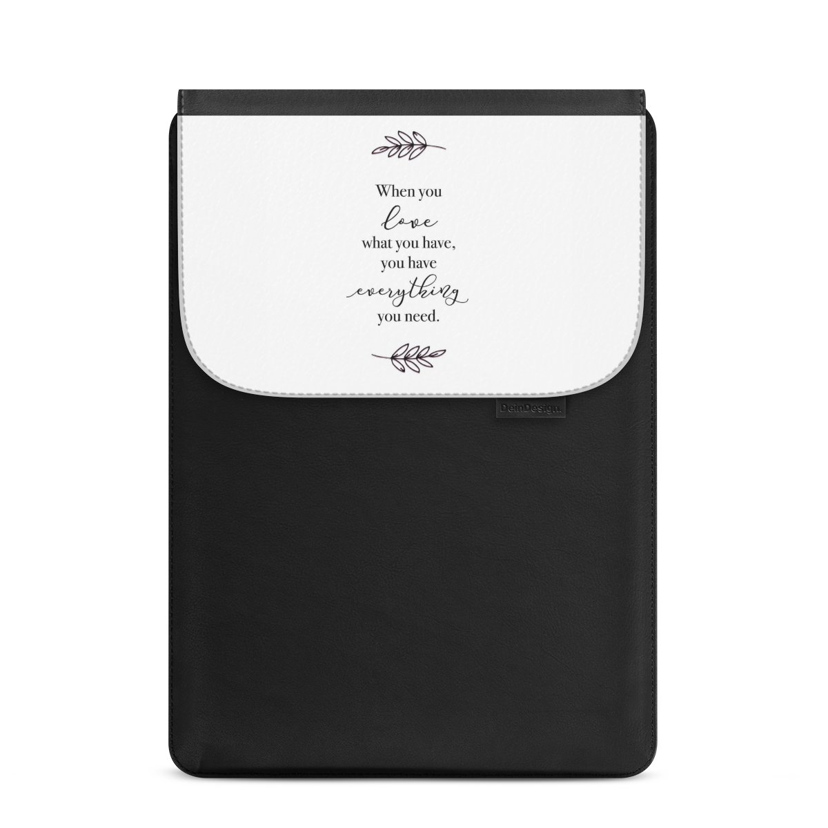Mit unserer Laptoptasche entscheidest Du Dich für vegane, recycelte Materialien und individuelles Design. Magnete im Deckel ermöglichen Dir ein einfaches Öffnen und Schließen. Die praktische Laptop Bag schützt Deinen Laptop rundum durch hochwertiges und einfarbiges veganes Skai®-Kunstleder auf Vorder- und Rückseite. Die Hülle ist innen zusätzlich mit weichem Kunstfilz aus recycelten PET-Flaschen gefüttert, damit Dein Gerät optimal geschützt ist. Die Wechselklappe lässt sich leicht durch einen Klettstreifen abnehmen und austauschen, für Deinen individuellen Style. Such Dir jetzt Dein Lieblingsmotiv aus unserem Shop aus oder gestalte sie mit Deinen eigenen Fotos!