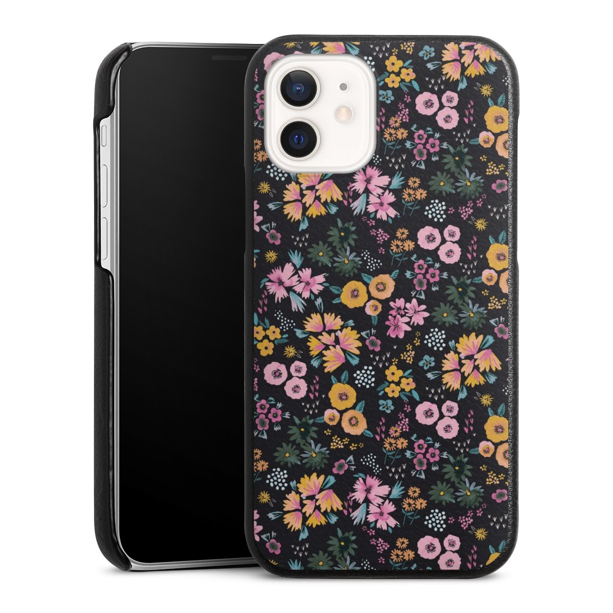 Kleine bunte Blumen Schwarz 2