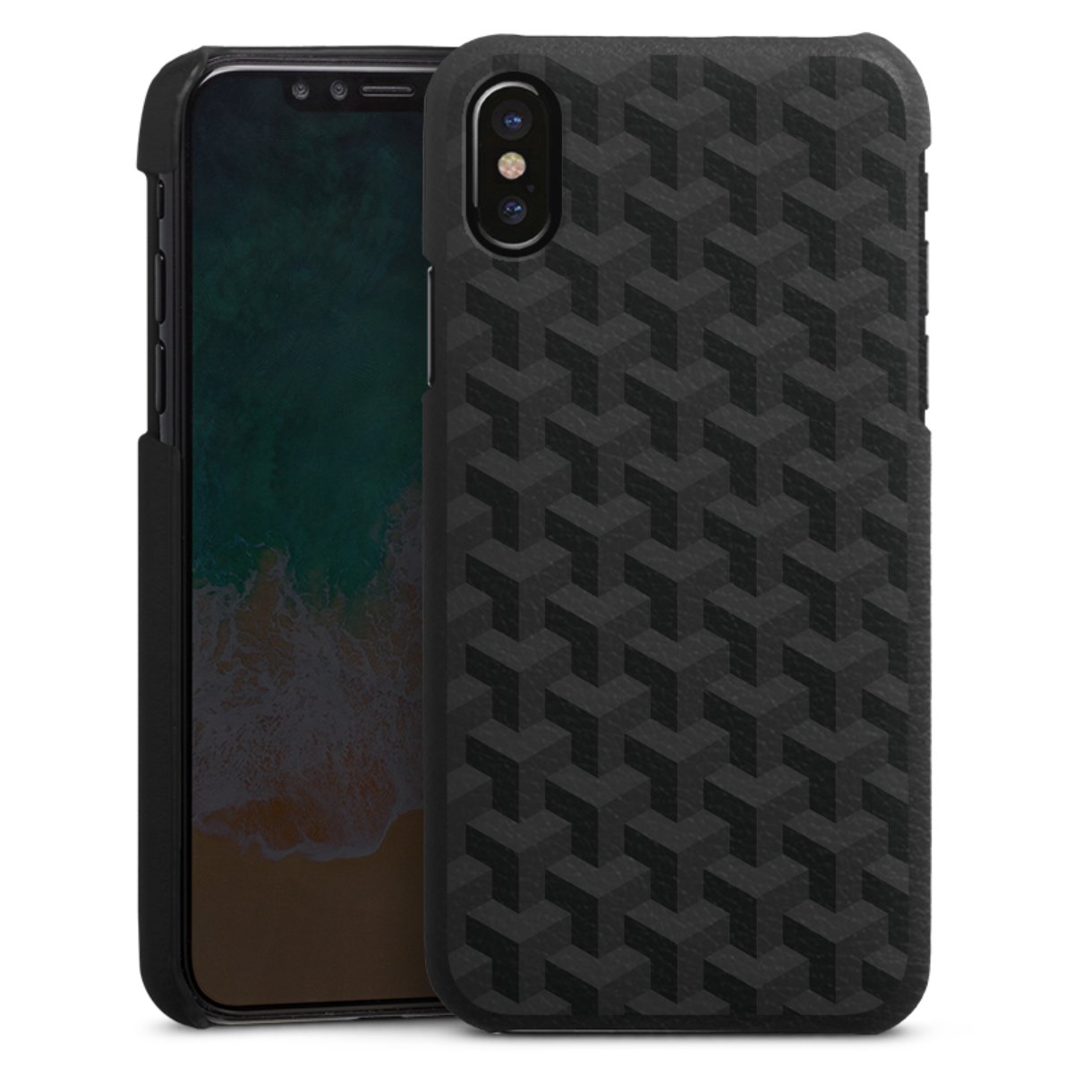 Die handgefertigte Handyhülle besteht außen aus hochwertigen Echtleder-Fasern, die Innenseite besteht aus stabilem Polycarbonat mit einer edlen Softtouch Beschichtung. Durch die Lederstruktur auf der Außenseite liegt das zeitlose Modell griffig in der Hand. Die Handyhülle ist in den Farben Schwarz, Weiß und Braun erhältlich.